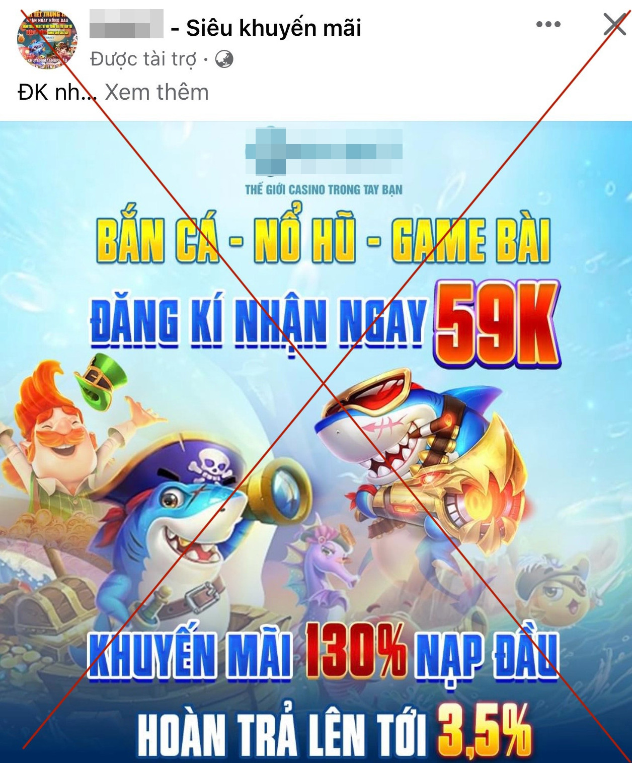 Hình ảnh các game cờ bạc như bắn cá, nổ hũ, game bài liên tục hiện lên trên trên tường của người dùng, với các cách thức “dụ dỗ” họ vào chơi game như đăng ký nhận được ngay tiền trong tài khoản, khuyến mãi lên đến 130% khi nạp lần đầu, hoàn trả lại tiền…