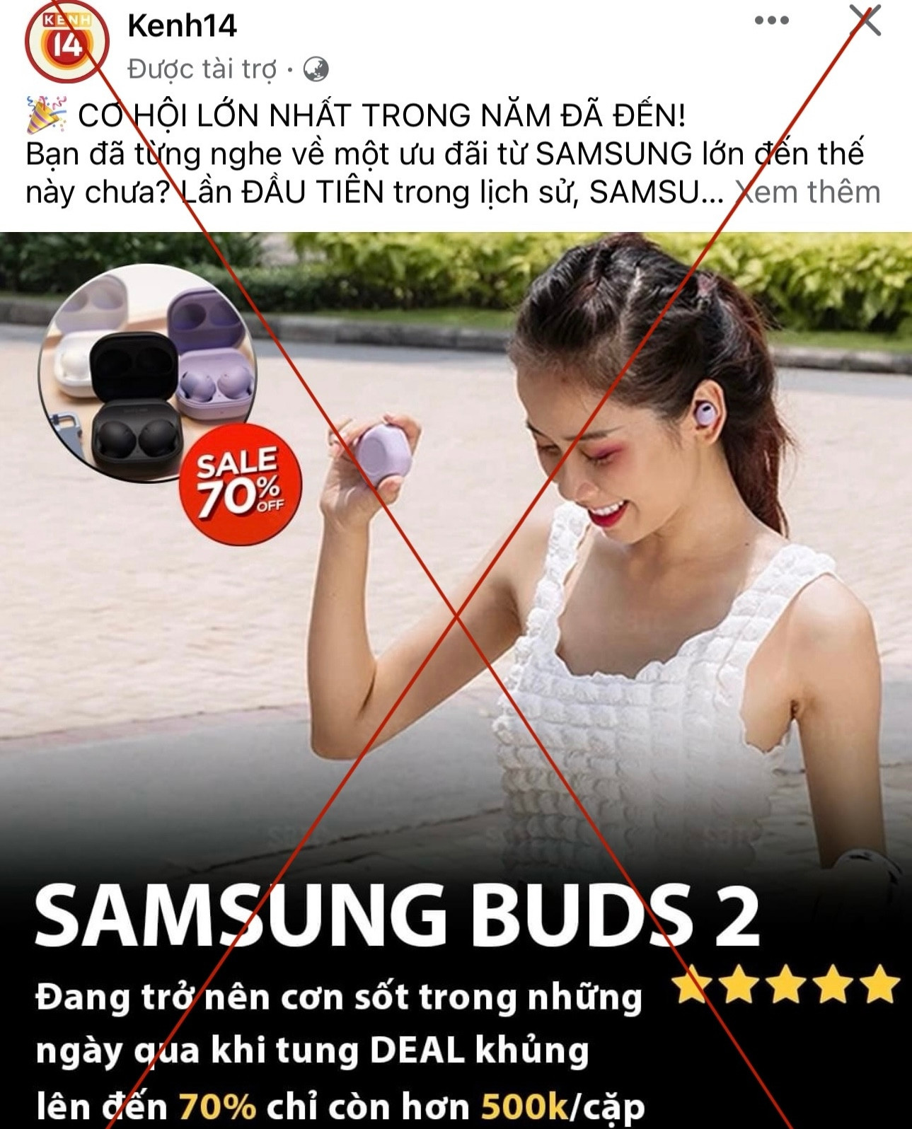 Quảng cáo bán hàng giả, hàng nhái, đặc biệt là trong lĩnh vực hàng công nghệ trong thời gian qua cũng xuất hiện rất nhiều trên Facebook. Điều đáng nói, những người chạy các quảng cáo này rất “hung hãn”, khi giả mạo fanpage các thương hiệu lớn, chẳng hạn như Marshall, JBL. Thậm chí, giả mạo cả trang tin tổng hợp cho giới trẻ Kenh14, như trường hợp quảng cáo tai nghe Samsung Buds 2 giả với giá giảm lên đến 70% còn hơn 500.000 đồng mới hiện lên gần đây.