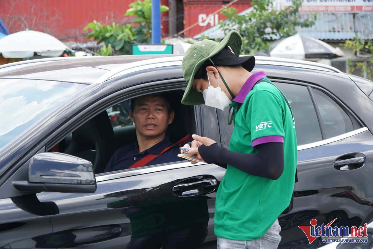 Riêng cao tốc TP.HCM - Long Thành - Dầu Giây, những ngày qua cũng được bố trí các điểm dán gần trạm thu phí, điểm ra vào, mỗi ngày hơn 3.000 thẻ. Có thời điểm ô tô đậu hàng dài trước trạm thu phí cao tốc để chờ dán thẻ đã gây cản trở giao thông.
