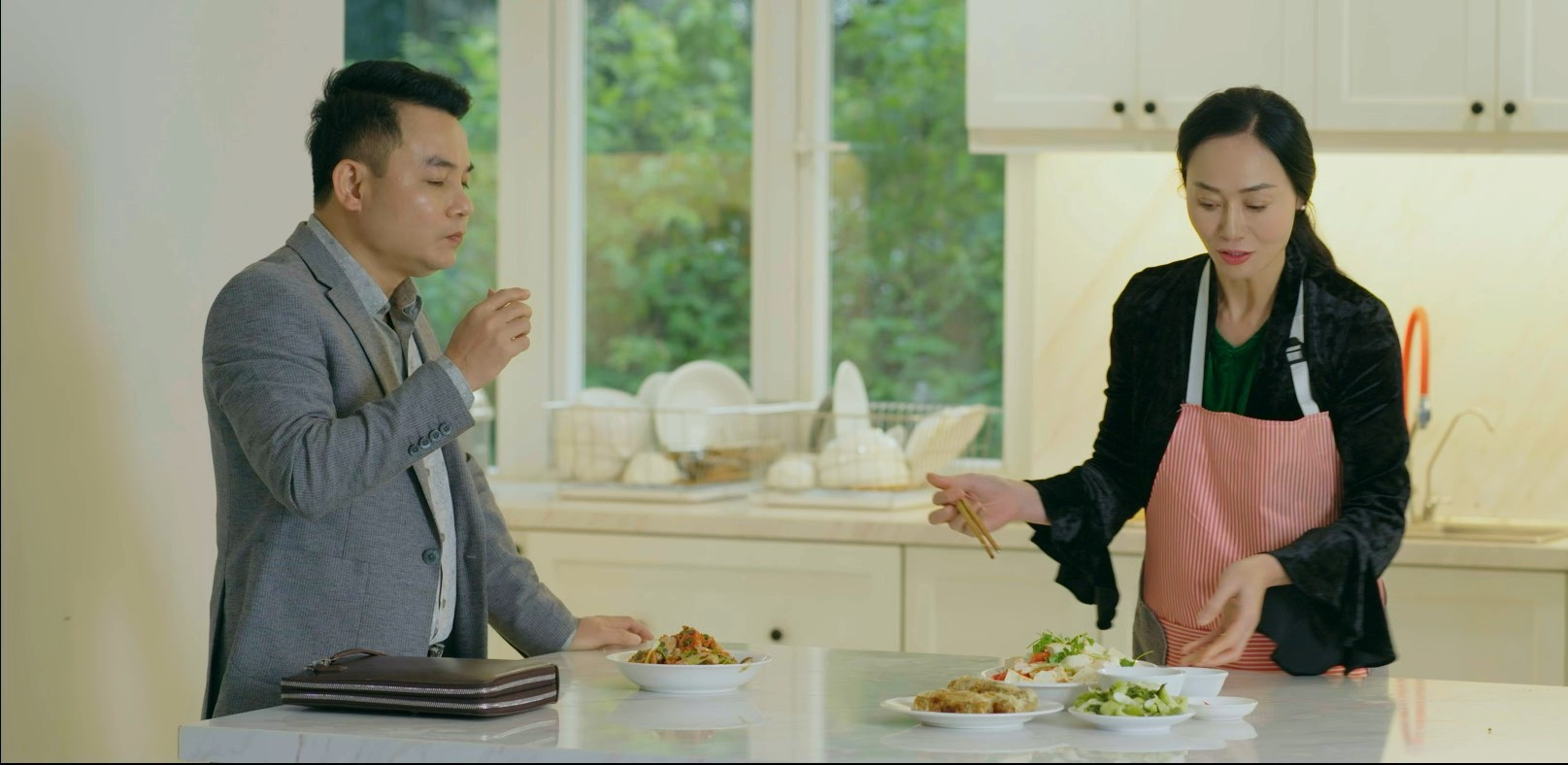 Tôi và NSƯT Mai Nguyên lần đầu hợp tác trong Hương vị tình thân nhưng chúng tôi có điểm chung là trước vai diễn nào cũng bàn bạc, trao đổi với nhau rất ăn ý. Vậy nên khi quay, chúng tôi đều có sự thống nhất cao. NSƯT Trịnh Mai Nguyên cũng là nam nghệ sĩ nhiều tài năng và tôi học hỏi được nhiều điều khi hợp tác chung.