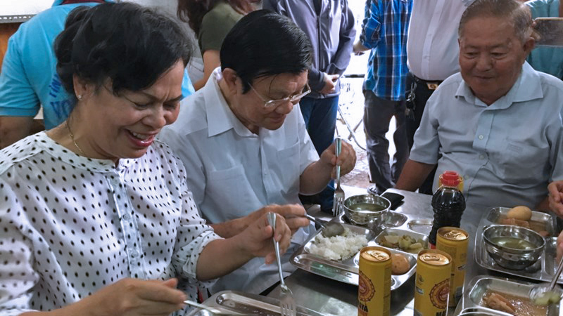 Vợ chồng nguyên Chủ tịch nước ăn cơm 2.000 đồng cùng người nghèo