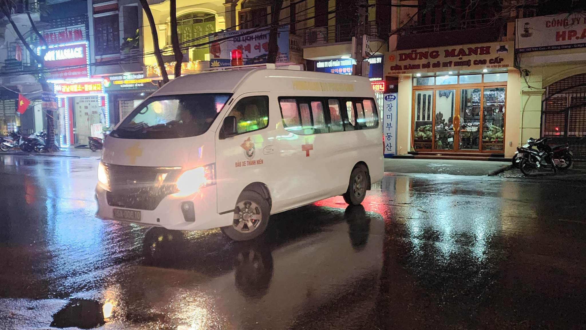 Xe cứu thương được điều tới hiện trường, cảnh sát tiếp cận vào bên trong để giải cứu người gặp nạn. Đoạn phố Văn Cao hiện đã rào chắn, hạn chế giao thông, ưu tiên công tác cứu hoả. Trời đổ mưa, ngọn lửa đã được khống chế.