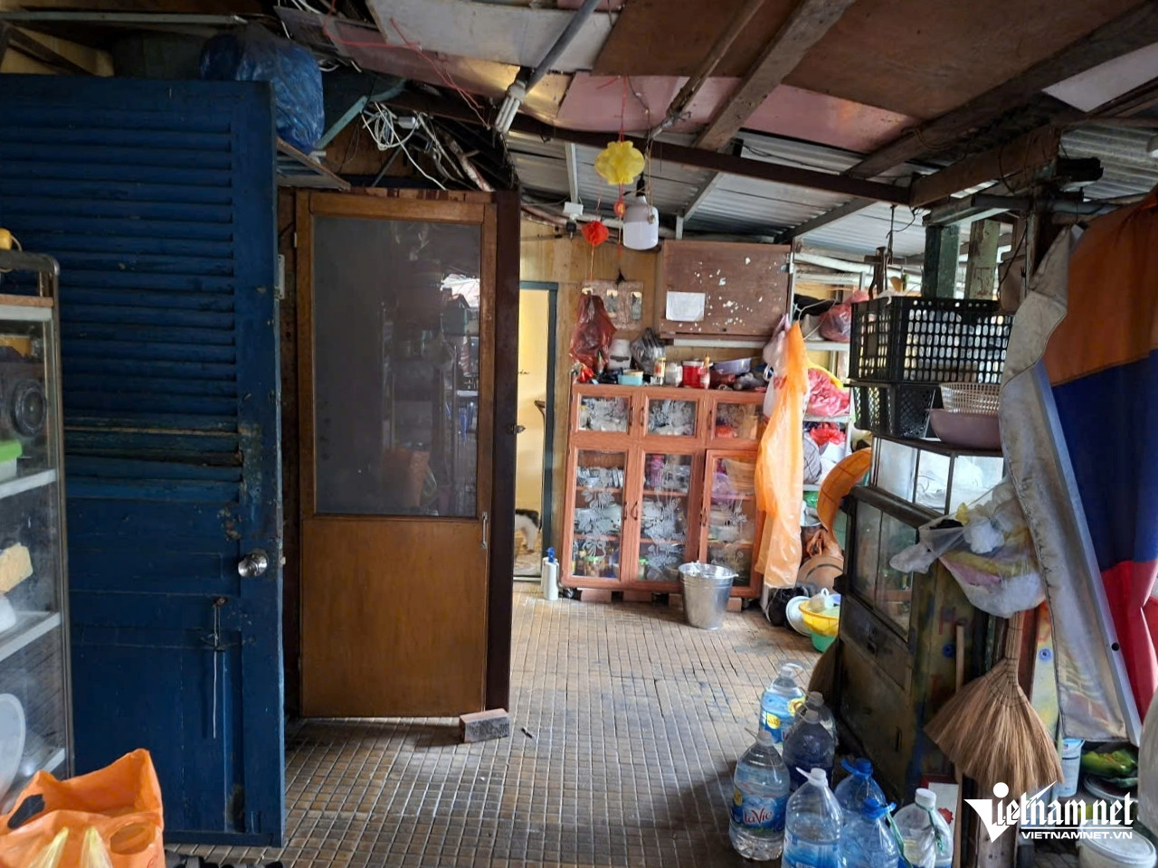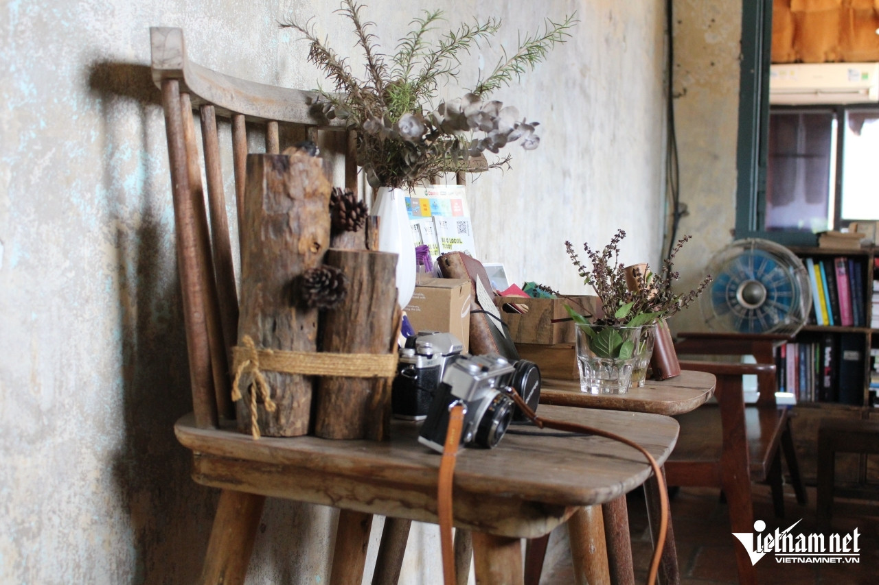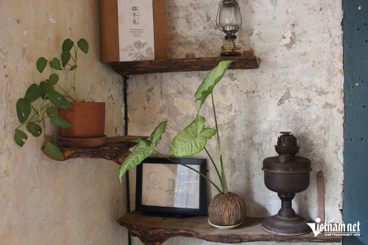 Quán nhỏ nằm cuối hành lang đâm xuyên qua vài căn bếp có mái che lợp bằng tôn cũ của những căn hộ này. Bước qua cánh cửa gỗ, du khách sẽ bắt gặp một quán cà phê mang vẻ yên bình, cổ kính và đầy riêng tư - nơi thời gian dường như chậm lại.