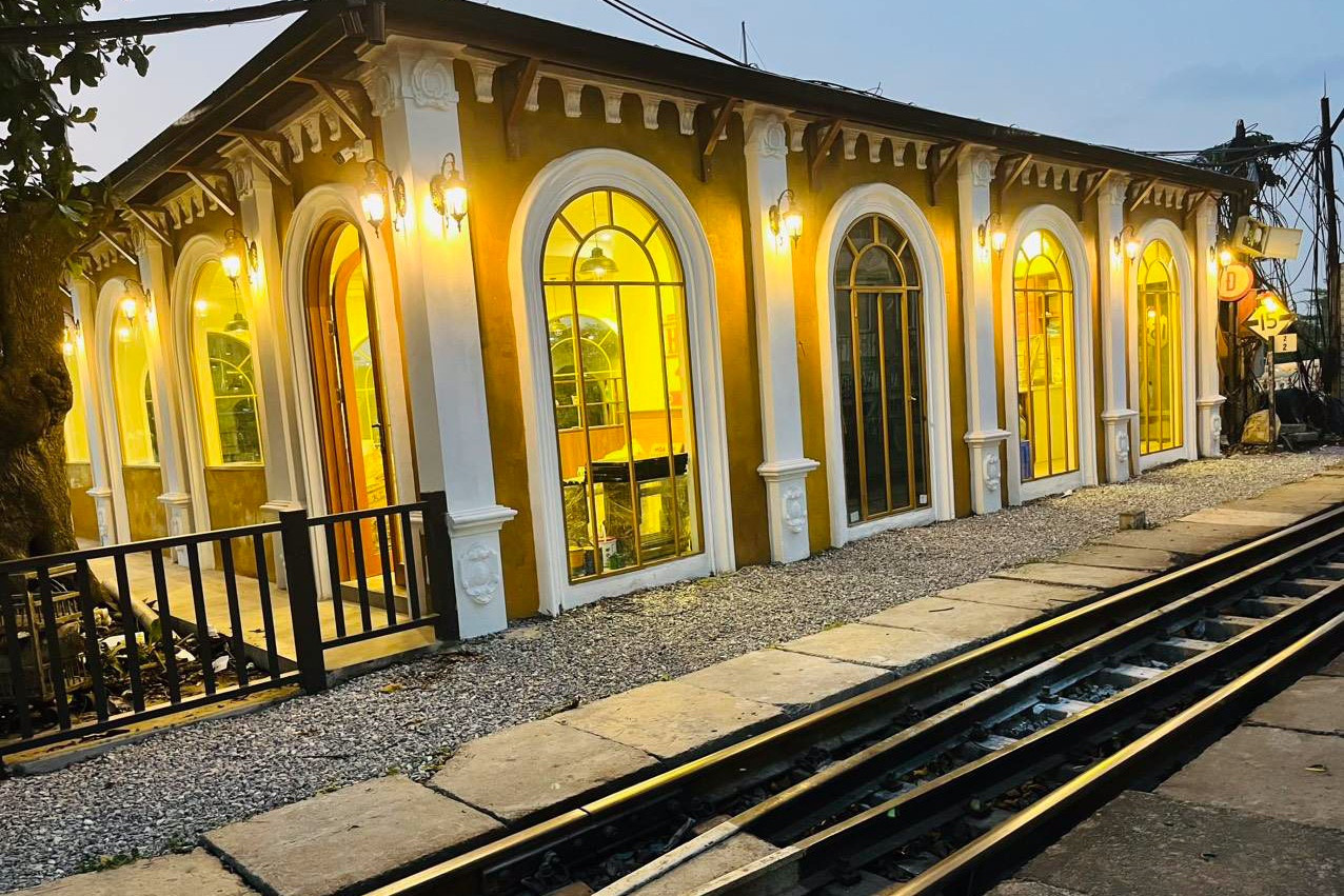 Đó là quán cà phê “Hoả xa” nằm sát ga Long Biên có cổng chính đón khách phía đường Trần Nhật Duật, có cổng phụ mở vào phía trạm ga Long Biên (do nhân viên Bảo vệ ga Long Biên phụ trách việc đóng, mở). Quán được thiết kế phân tách những ô cửa kính rộng. Từ vị trên cao, du khách có thể ngắm nhìn những đoàn tàu chạy qua ngay bên cạnh. Đặc biệt tại đây khách có thể nhìn thấy kiến trúc cổ kính của Cầu Long Biên, Ga Long Biên.