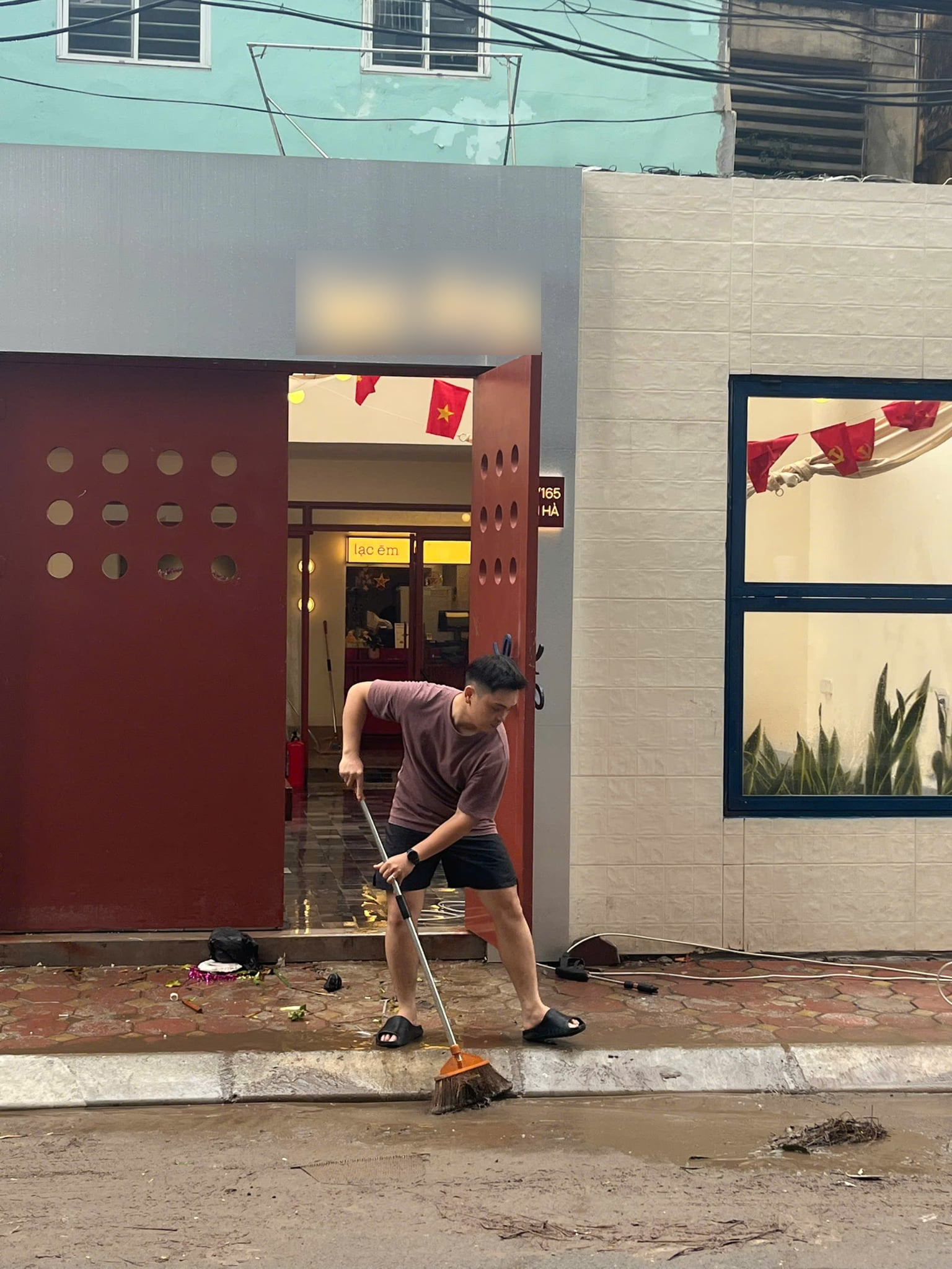 "Trong hơn 1 tháng qua, tính từ lúc khai trương (cuối tháng 8), quán đã hứng chịu 3 trận ngập do ảnh hưởng của bão Ragasa (26/8), bão Bualoi (30/9) và bão Matmo (7/10). Mực nước ngập phía trong quán khoảng 60cm và thậm chí cao tới 90cm vào ngày 30/9", anh Hiếu Nguyễn, đồng sáng lập quán cà phê cho biết.