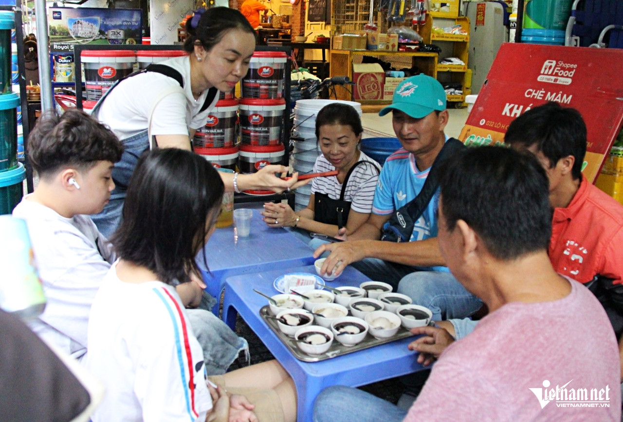Một phụ nữ của gia đình này chia sẻ mình biết đến quán chè mâm của chị Tuyền đã lâu. Chị thích hương vị và cách ăn không cần dùng đá lạnh của quán chè.