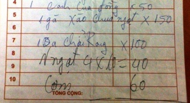 Mặc dù trong bữa ăn không có 2 bát cơm, nhưng một nhà hàng ở Sầm Sơn (Thanh Hóa) vẫn “chặt chém” thêm lấy 60.000 đồng, nên bị phạt 20 triệu đồng.