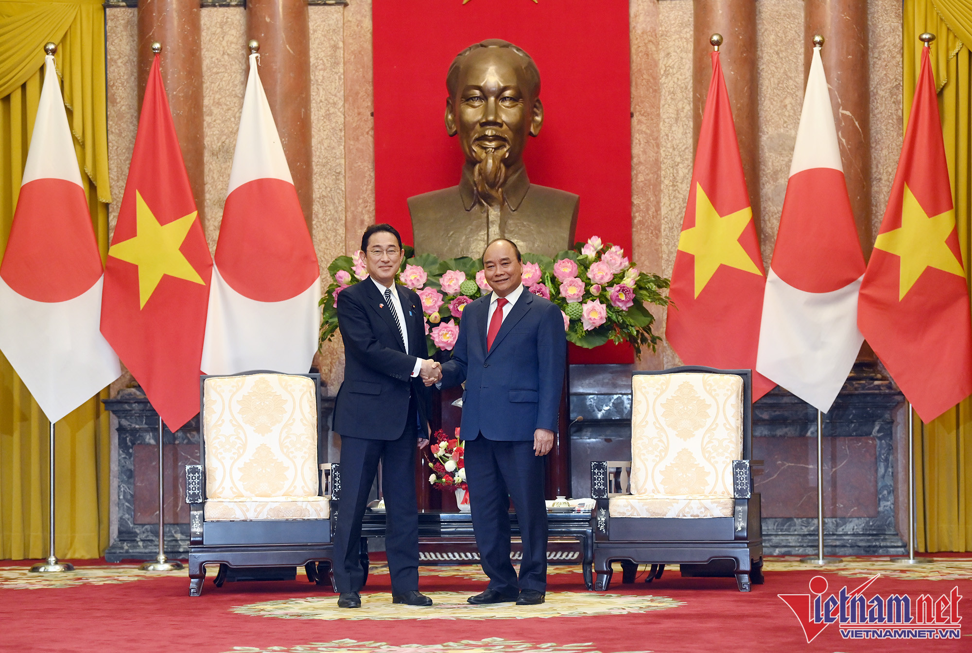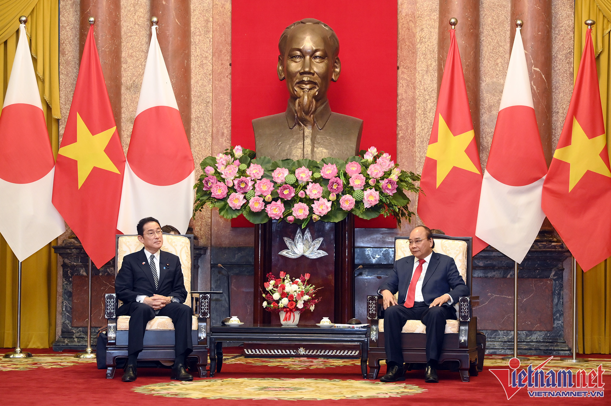 Chủ tịch nước Nguyễn Xuân Phúc đánh giá cao việc Thủ tướng Kishida Fumio đã thăm Việt Nam, thể hiện tình cảm chân thành, sự coi trọng đối với Việt Nam và quan hệ Đối tác chiến lược sâu rộng giữa hai nước. Chủ tịch nước cảm ơn những đóng góp quan trọng của Thủ tướng Kishida vào sự phát triển mạnh mẽ của quan hệ Việt Nam - Nhật Bản trên nhiều cương vị khác nhau.