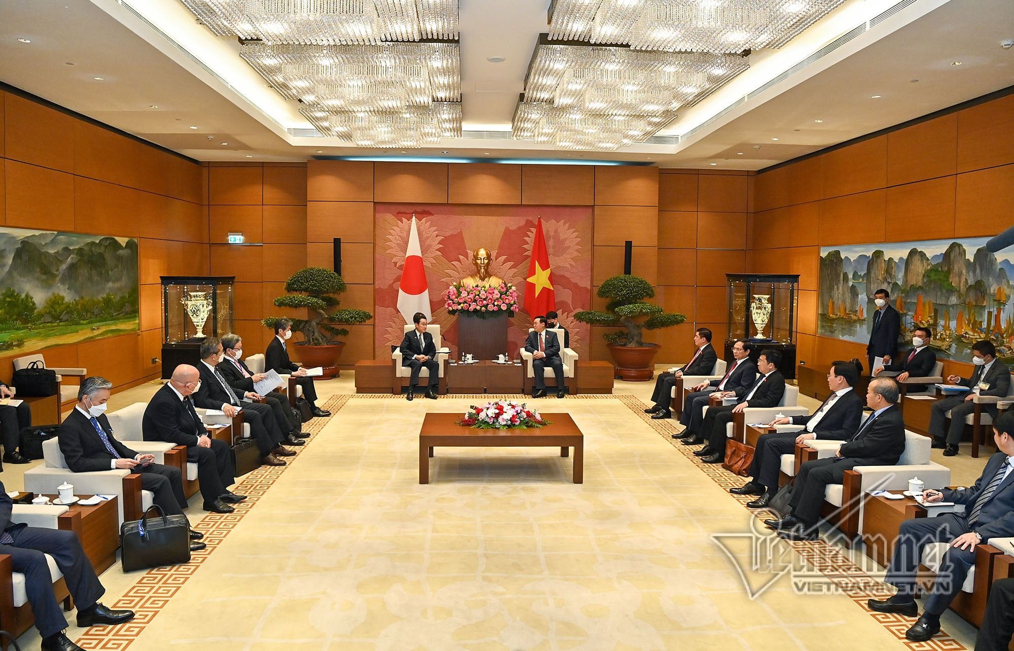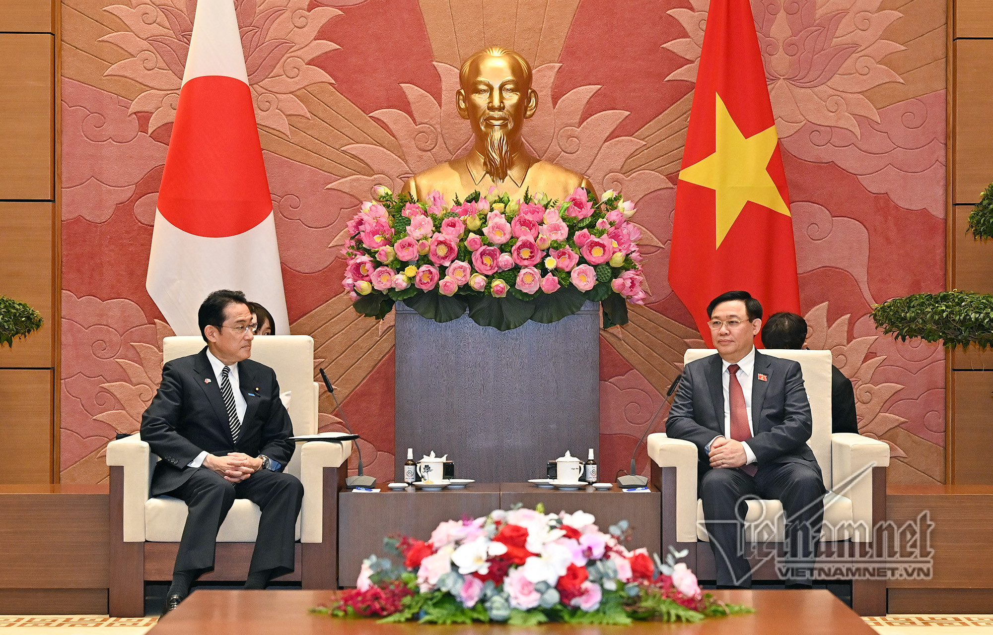 Bày tỏ vui mừng chào đón Thủ tướng Kishida Fumio - người bạn thân thiết lâu năm của Việt Nam, Chủ tịch Quốc hội Vương Đình Huệ tin rằng chuyến thăm của Thủ tướng sẽ là dấu mốc làm sâu sắc, hiệu quả và thực chất hơn nữa quan hệ giữa hai nước trong thời gian tới.