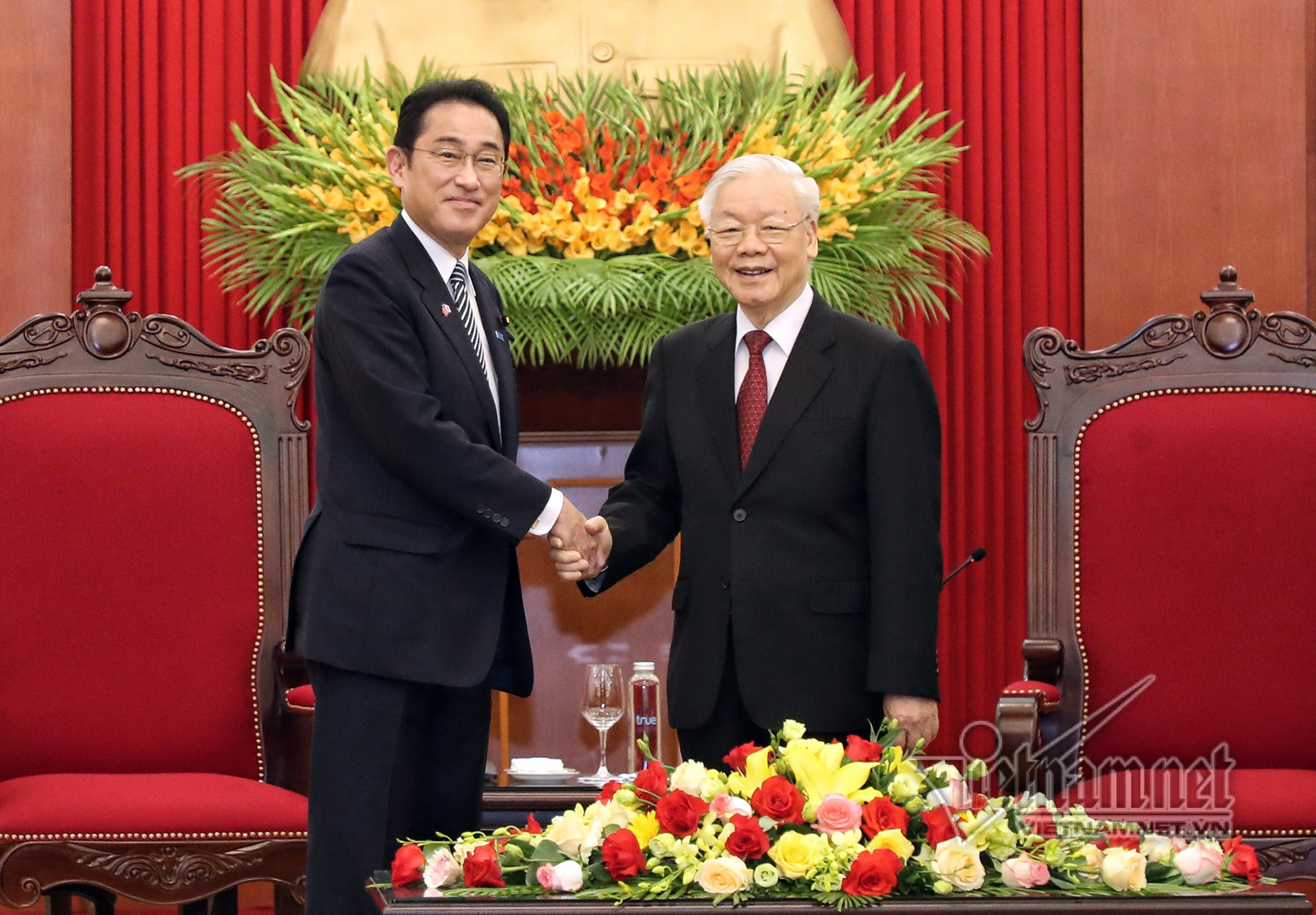 Tổng Bí thư Nguyễn Phú Trọng đánh giá cao những kết quả tốt đẹp của chuyến thăm, nhất là trong hội đàm giữa Thủ tướng Kishida Fumio với Thủ tướng Phạm Minh Chính, các cuộc hội kiến của Thủ tướng Kishida Fumio với Chủ tịch nước Nguyễn Xuân Phúc, Chủ tịch Quốc hội Vương Đình Huệ, qua đó hai nước đạt được nhiều nhận thức chung, thỏa thuận và các biện pháp hợp tác quan trọng.