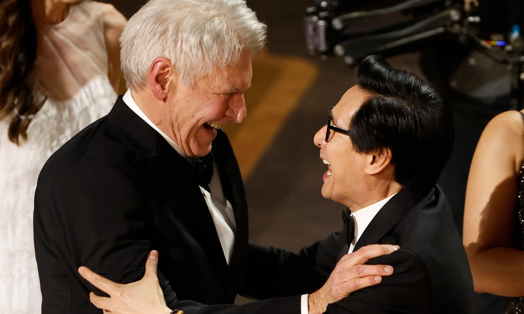 Tại lễ trao giải Oscar đầu năm nay, bộ phim của Quan Kế Huy đã chiến thắng tới 7 tượng vàng Oscar. Tài tử Harrison Ford là người công bố giải thưởng Phim hay nhất cho Everything Everywhere All at Once trên sân khấu Oscar lần thứ 95. Quan Kế Huy quá vui sướng và đã nhảy cẫng lên ôm và hôn má bạn diễn trong Indiana Jones năm xưa.