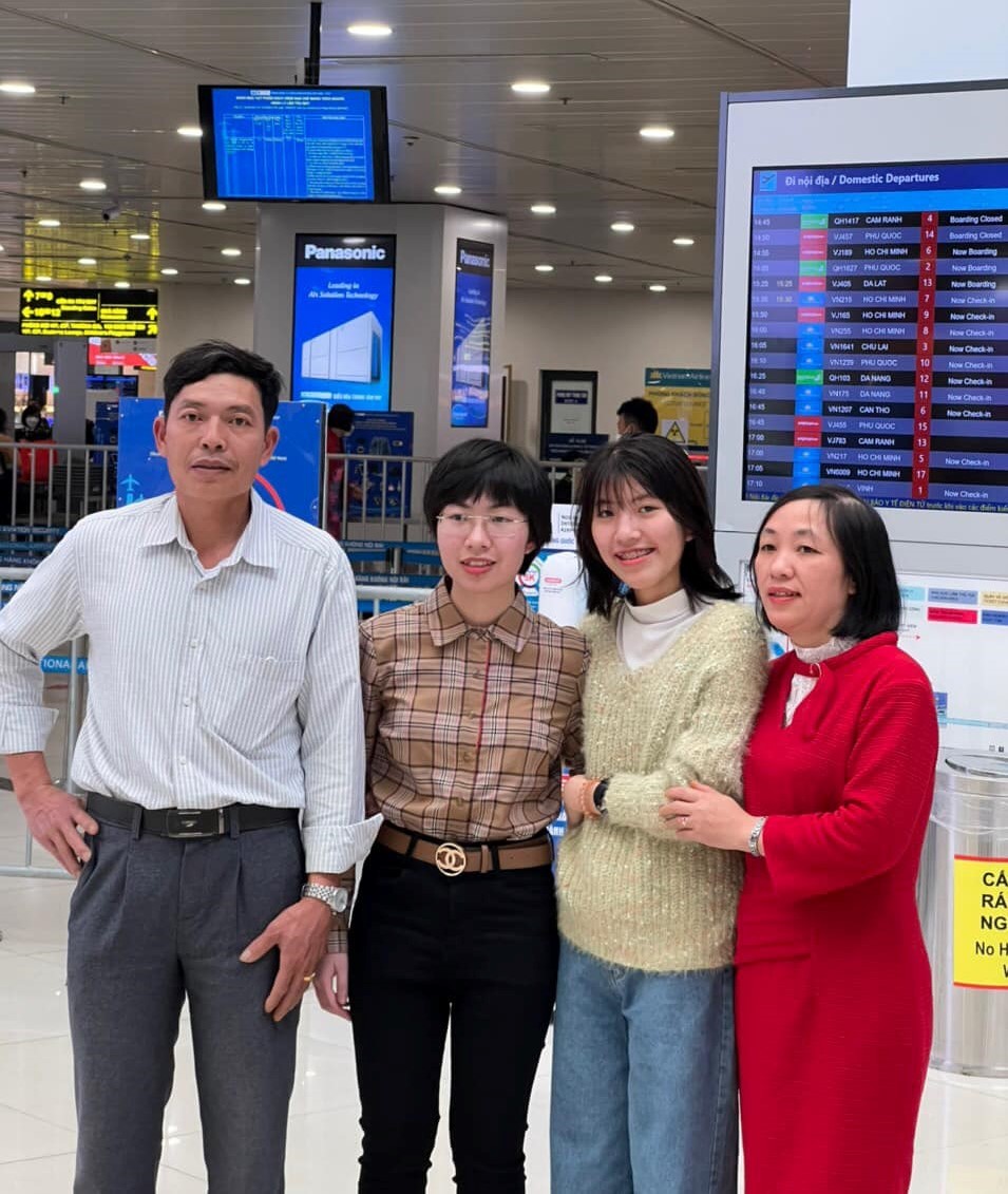 Thu Hằng chụp ảnh kỷ niệm cùng gia đình trước khi lên đường.