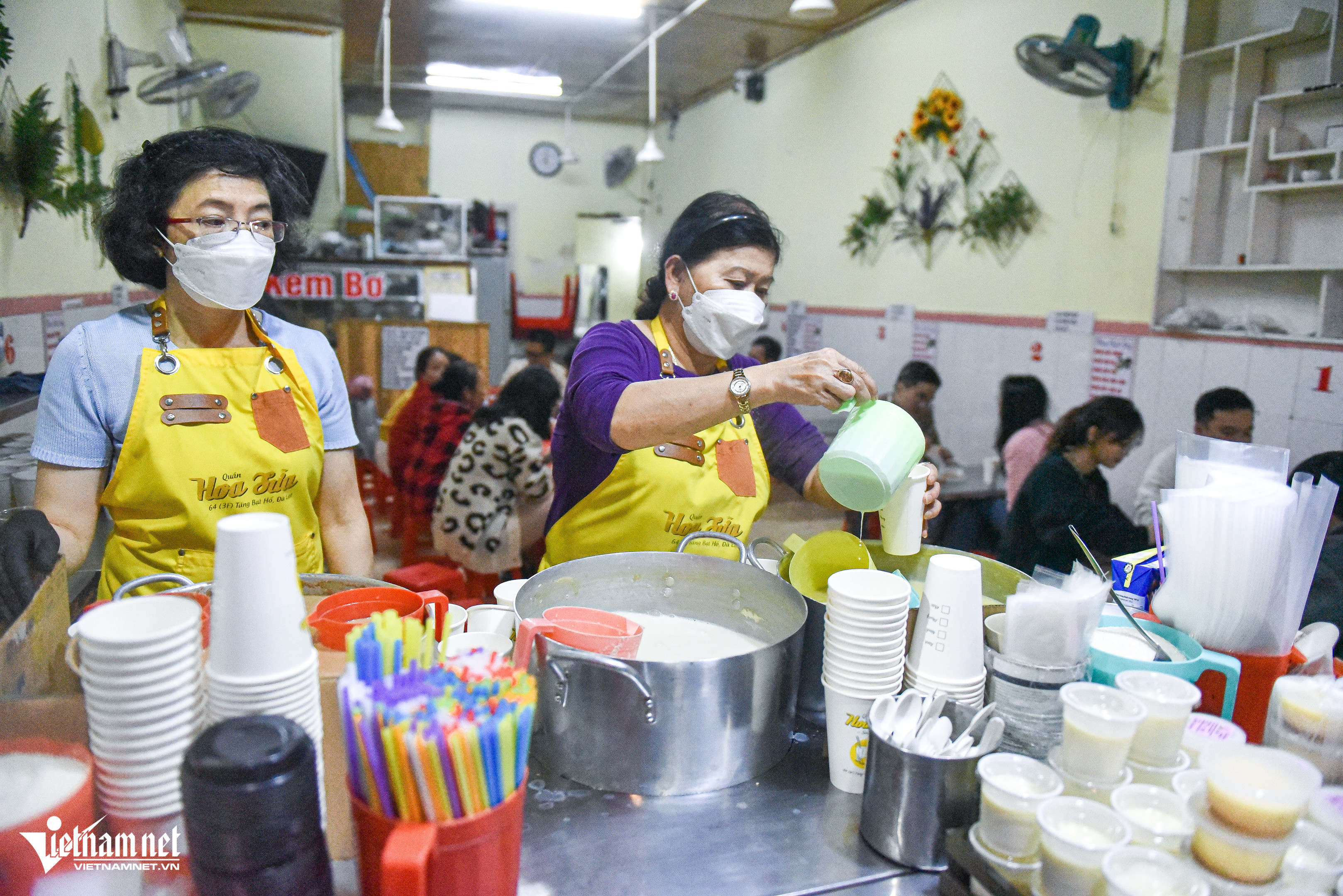 Giờ cao điểm, khách ngồi tràn xuống lề đường, ngã ba, vừa nhâm nhi ly sữa nóng hổi vừa thưởng thức chút bánh su kem, bánh tiêu, sừng trâu... Nhiều bạn trẻ thường gọi đây là "tiệm sữa đậu nành ôm", bởi quán không có mái che nên về đêm, khi gió lạnh ùa về, thực khách chỉ muốn ôm lấy nhau cho ấm áp.