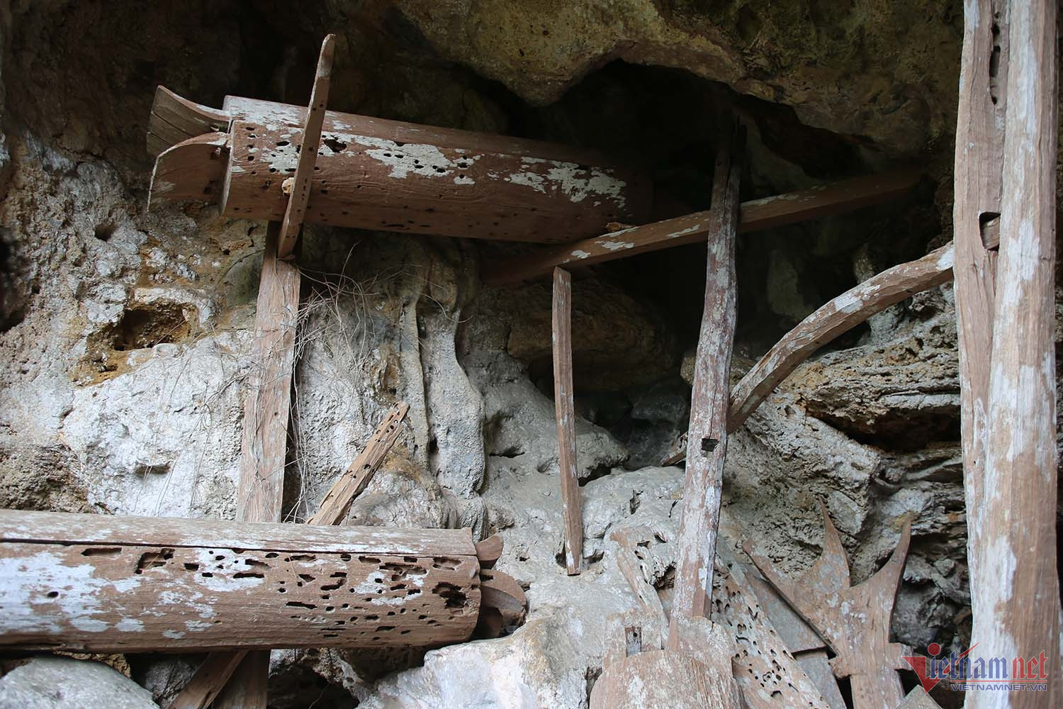 Theo quan sát, những cỗ quan tài an táng trên núi được làm khá cầu kì như hình tượng con người, mỗi cỗ quan tài dài khoảng hơn 2m làm từ thân cây khoét rỗng. Hai đầu chế tác mấu chốt hình “đầu thuyền đuôi én”. Một số quan tài trong hang còn có hình răng cưa. Trải qua cả nghìn năm vẫn còn một số quan tài khá nguyên vẹn, có quan tài còn giữ lại hài cốt của người xưa.