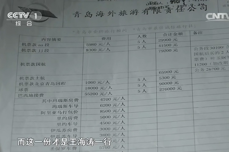 “Bởi vì lúc ông ta tới Brazil là vào thời điểm World Cup diễn ra, nên giá tiền thuê khách sạn khi đó rất đắt đỏ, lên tới 1.000 USD/tối. Càng về cuối giải đấu, giá tiền thuê phòng càng cao hơn. Tổng số tiền Vương và bốn cá nhân khác đi du lịch ở Mỹ và Brazil khi đó lên tới 94.200 USD, tức gần 600.000 Nhân dân tệ. Tất nhiên, toàn bộ những chi phí đó sẽ do công ty bất động sản kia chi trả”, ông Cao Thăng Kiệt cho biết.