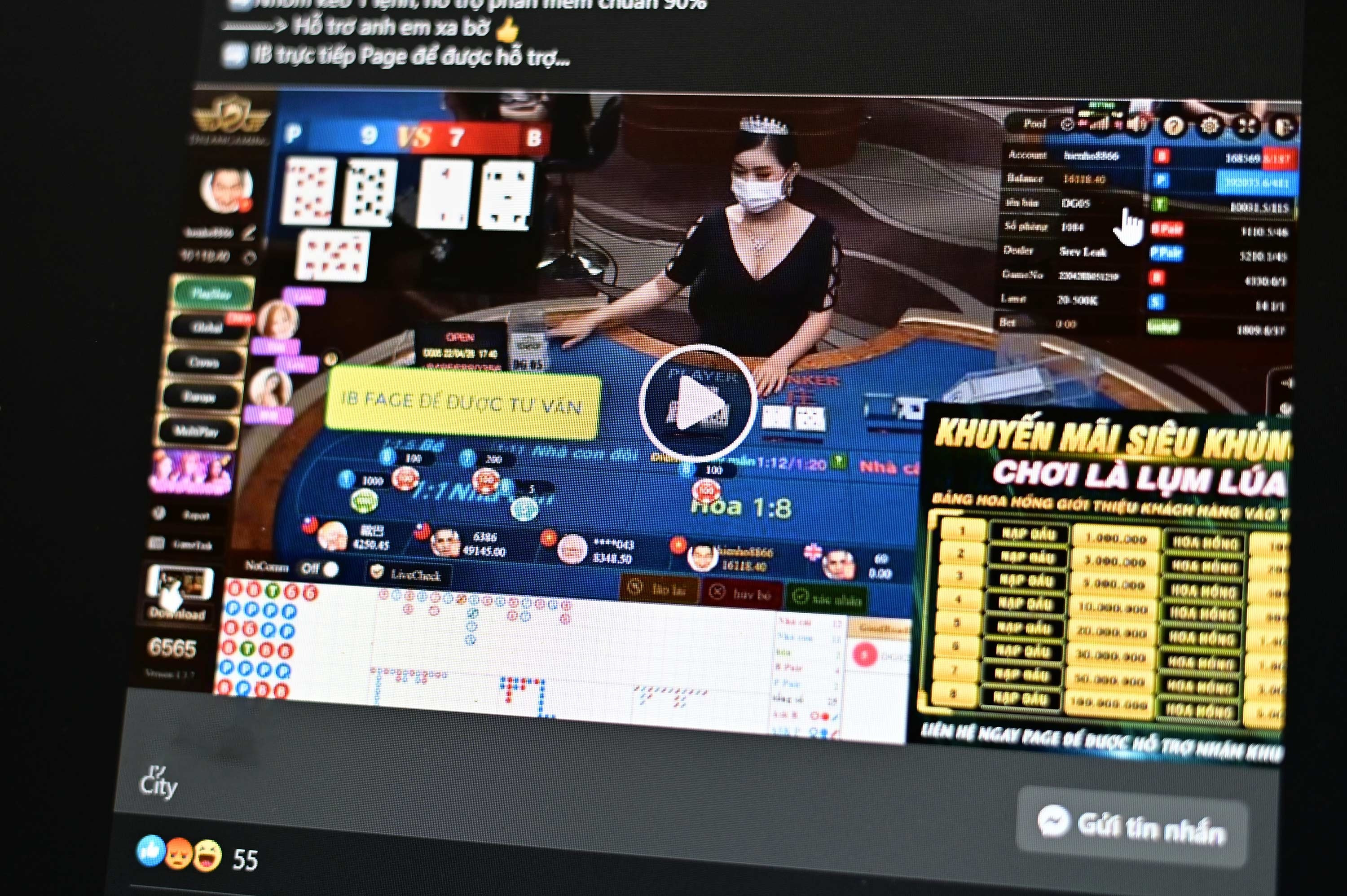 Livestream nội dung cờ bạc được Facebook quảng cáo. Ảnh: Xuân Sang. |