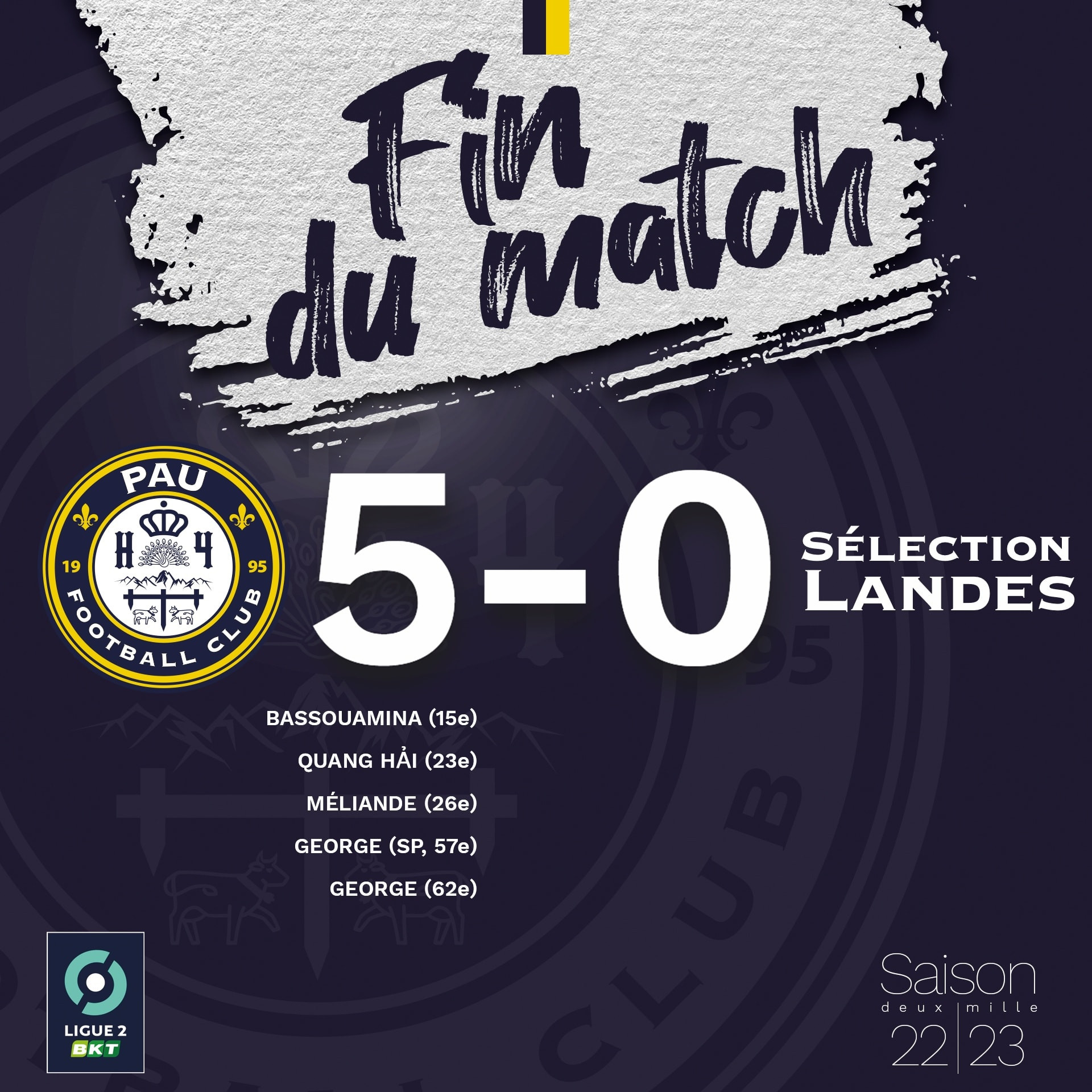 Dù không thể chơi trọn vẹn 90 phút nhưng Quang Hải đã có màn ra mắt thành công ở Pau FC. Anh có nhiều cơ hội nguy hiểm trong trận đấu và đóng góp một bàn thắng trong chiến thắng 5-0 của Pau FC trước đối thủ nghiệp dư tại thị trấn St-Paul-Les-Dax.