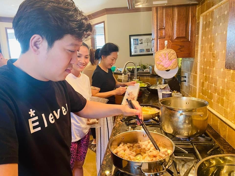 Trước đó, trong một chuyến lưu diễn tại Mỹ, vợ chồng Hồng Ngọc đã tiếp đón Trường Giang - Nhã Phương đến chơi, tổ chức tiệc họp mặt. Trường Giang còn đích thân vào bếp trổ tài nấu ăn.