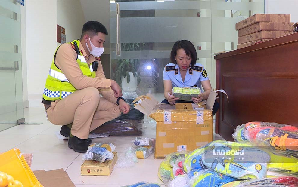 Tổ công tác tiến hành dừng xe, phát hiện trên thùng xe chở nhiều giày thể thao có dấu hiệu làm giả một số nhãn mác thương hiệu nổi tiếng; nhiều loại thực phẩm, biệt dược, hoa quả tem mác là chữ nước ngoài, không có giấy tờ chứng minh nguồn gốc xuất xứ.