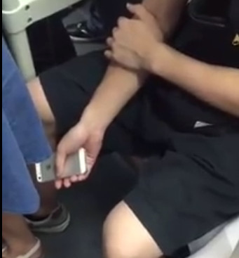 Người đàn ông dùng iPhone quay lén cô gái mặc váy ngắn trên tàu điện đã bị ghi hình.
