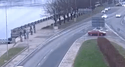 Một chiếc Peugeot không được kéo phanh tay đã tự trôi lùi ngang qua đường và rơi thẳng xuống sông.