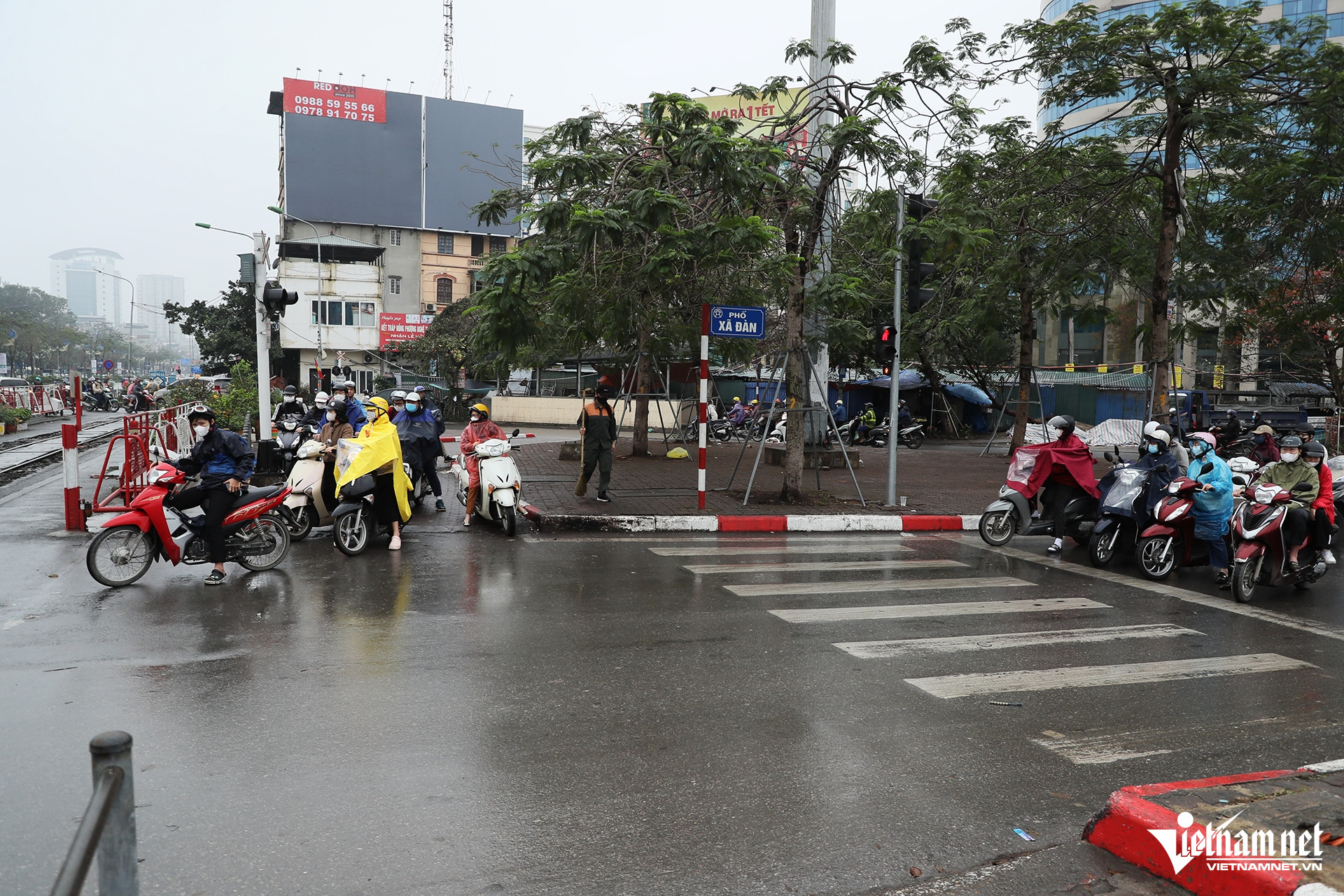 Nhiều người đứng lộn xộn tại nút giao này gây cản trở giao thông hướng từ Lê Duẩn - Giải Phóng.