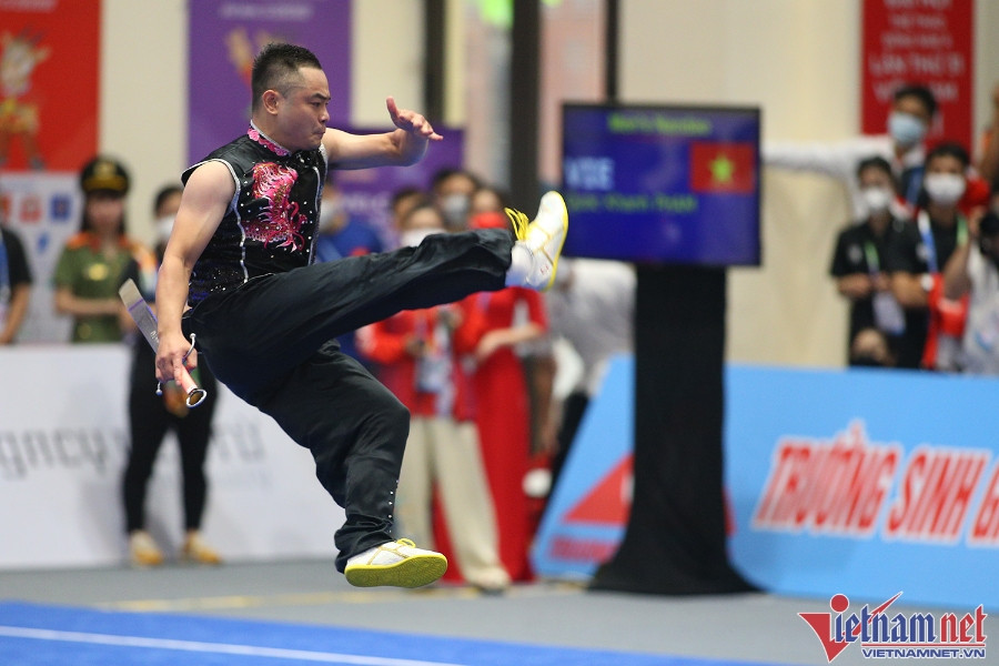 Phạm Quốc Khánh là VĐV "mở hàng" tấm HCV cho đội tuyển wushu Việt Nam trong ngày thi đấu đầu tiên tại SEA Games 31.