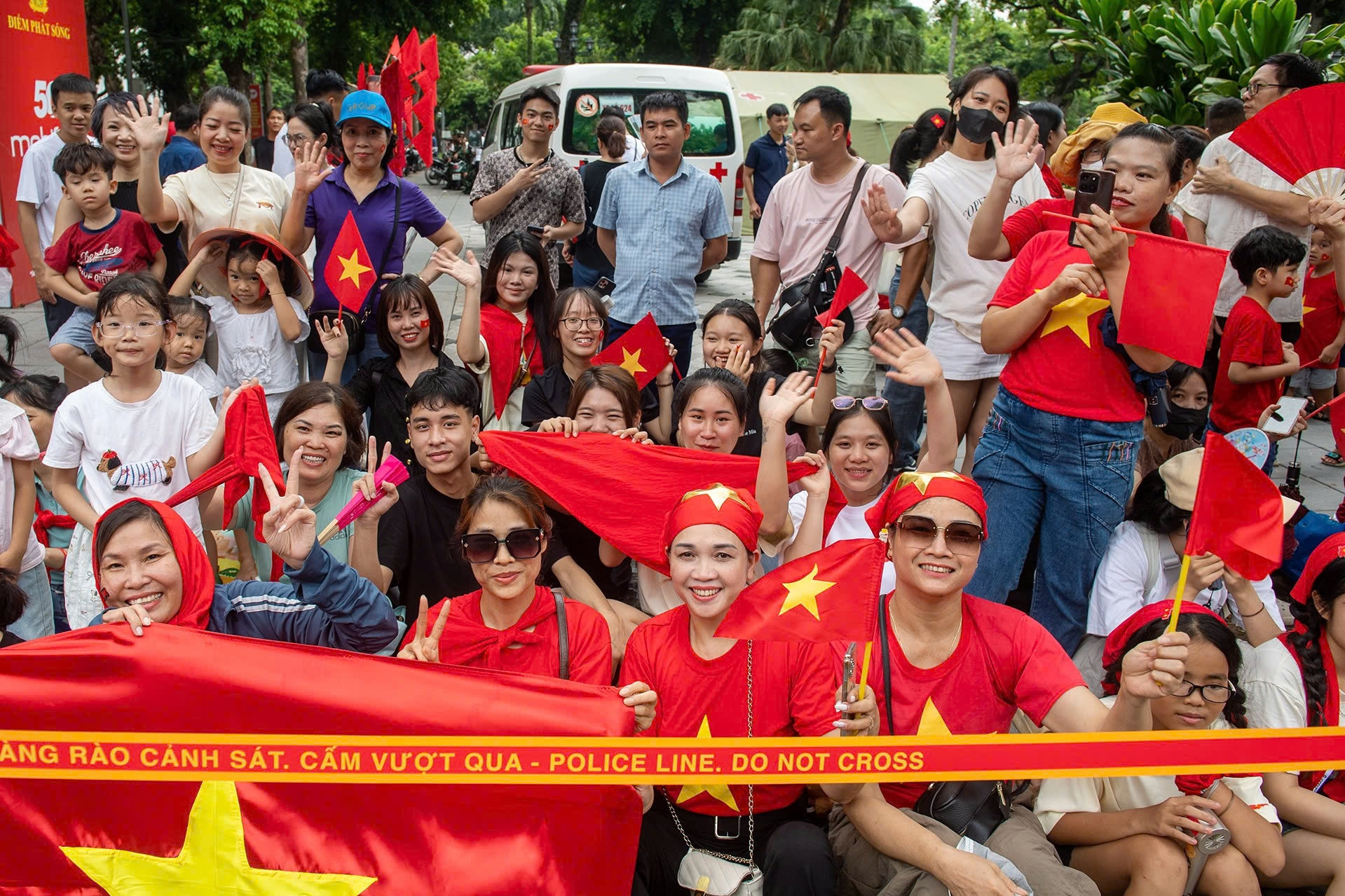 Hàng nghìn người đã tập trung dọc các tuyến đường xung quanh Quảng trường Ba Đình chờ xem buổi hợp luyện lễ diễu binh, diễu hành Quốc khánh 2/9.