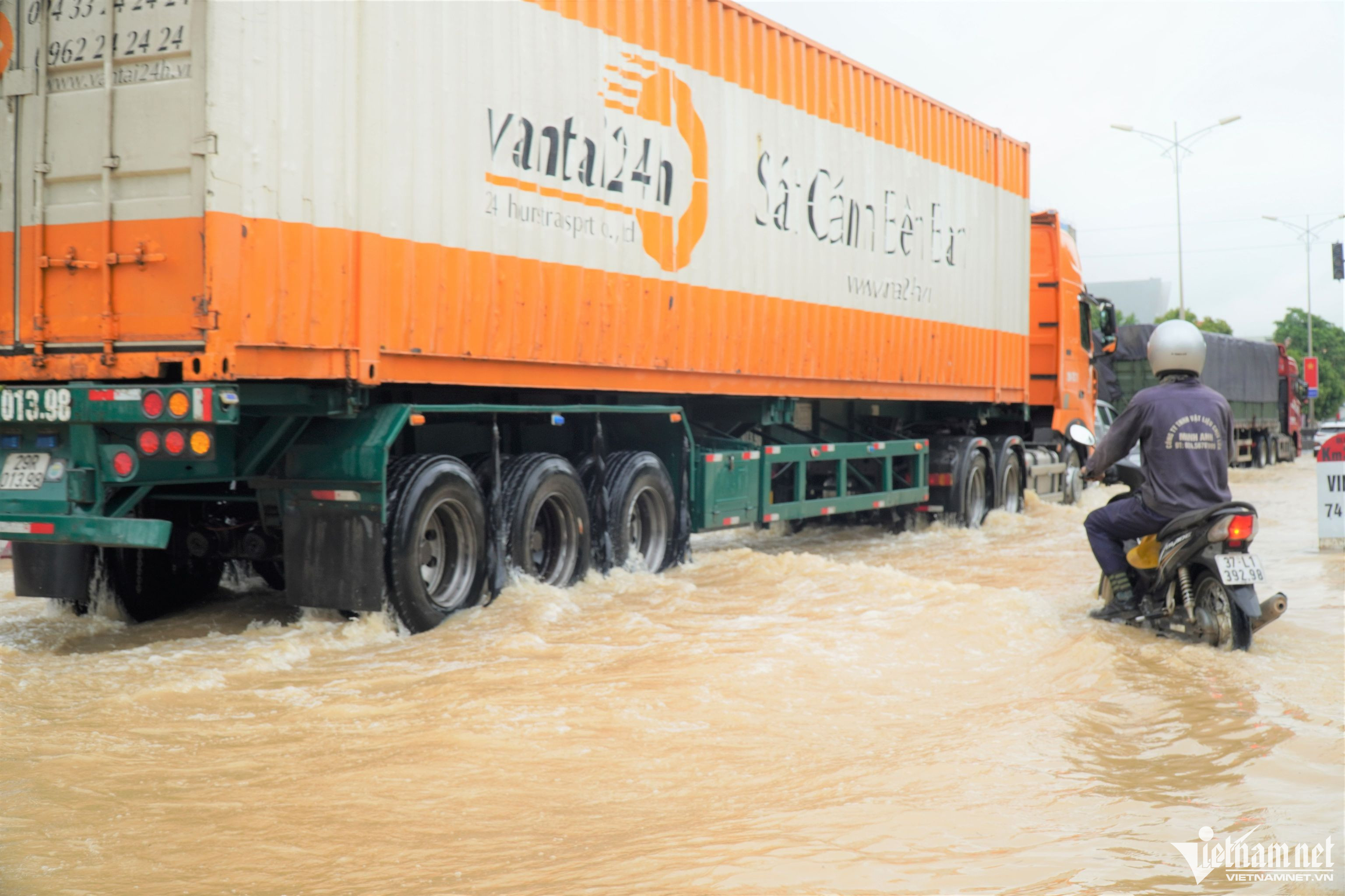 Một số hình ảnh nước ngập hơn 2km tại QL1A đoạn qua phường Quỳnh Thiện, thị xã Hoàng Mai:
