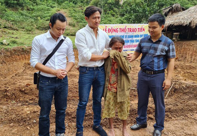 | Quý Bình trong đợt cứu trợ miền Trung năm ngoái. |