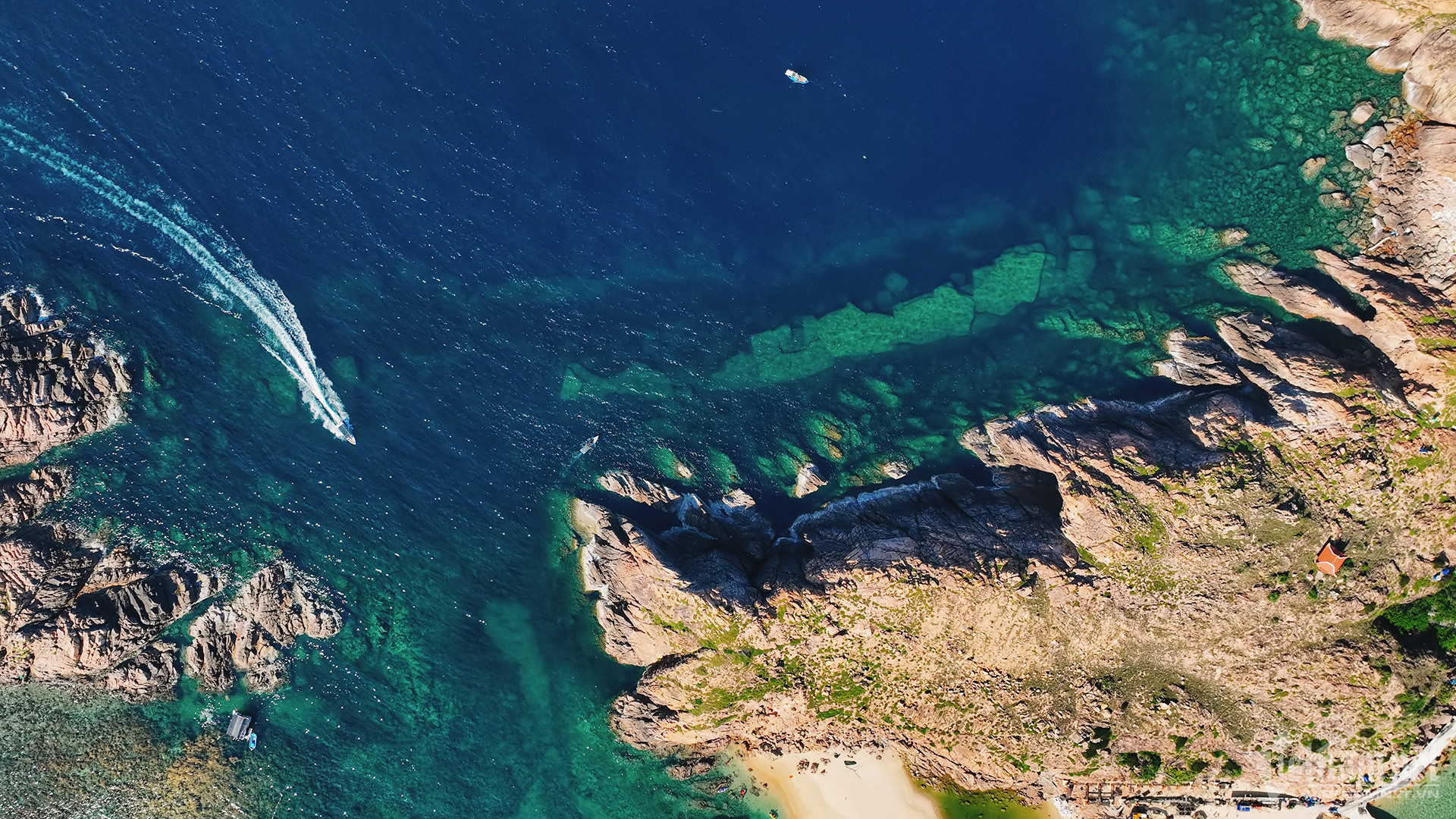 Nước biển tại đây xanh ngắt như nước biển ở nhiều hòn đảo nổi tiếng trên thế giới như Ấn Độ Dương, Maldives... Phía trong gần bờ nước biển có màu xanh ngọc, còn phần biển ở ngoài xa nước có màu lam sẫm.