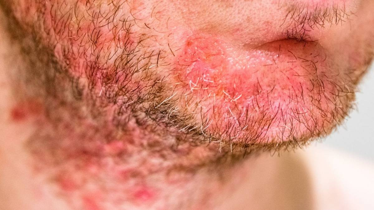 Bệnh thường gặp ở nam giới sau cạo râu, với cảm giác khó chịu liên tục và nhiều vết sưng tấy. Biểu hiện là sẩn đỏ hoặc mụn mủ ở lỗ nang lông, xung quanh có quầng đỏ. Khi vỡ, để lại vết trợt nhỏ có vảy vàng, mụn rải rác nhưng cũng có thể bị tụ thành đám mụn vùng râu mép, râu cằm…