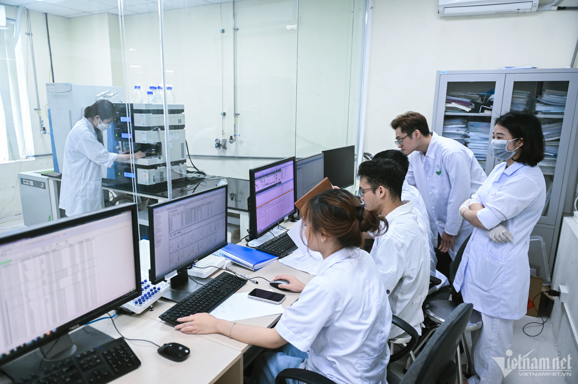 VietNamNet ghi lại quá trình các kiểm nghiệm viên phát hiện chất có nguy cơ gây ngộ độc trong mẫu thực phẩm tại khoa Độc học và dị nguyên - Viện Kiểm nghiệm An toàn vệ sinh thực phẩm quốc gia (thuộc Bộ Y tế), tháng 4/2024.