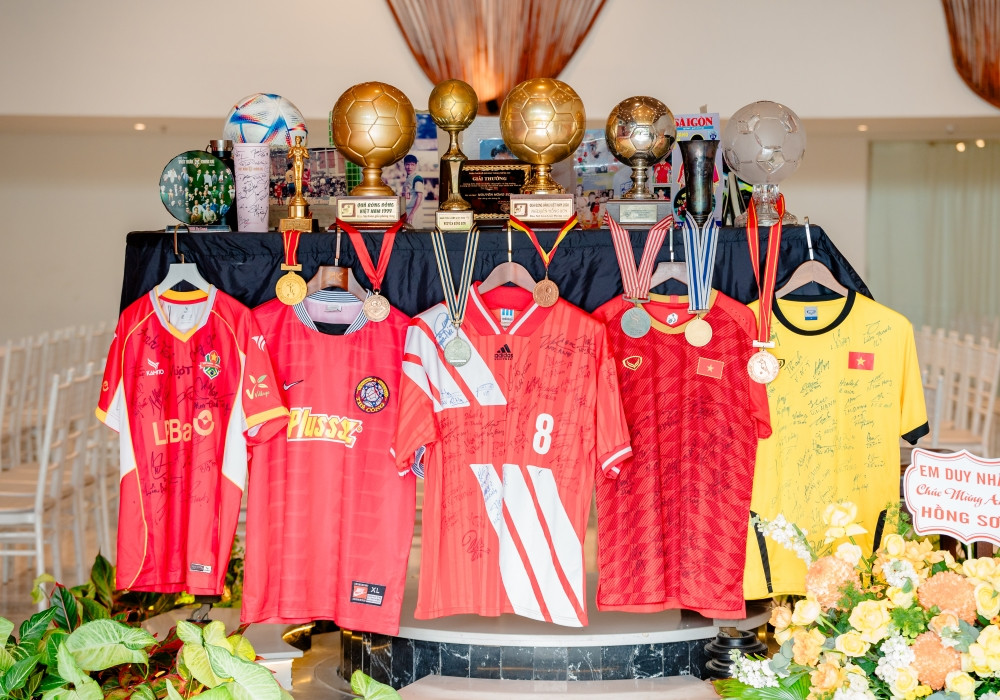 Hồng Sơn dành hẳn một phần không gian để trưng bày nhiều kỷ vật như cúp, huy chương, bằng khen, áo thi đấu, những tấm ảnh quý giá… Anh gửi lời tri ân tới bạn bè, đồng đội, khán giả, đặc biệt là gia đình. Sự kiện ra mắt sách có sự góp mặt của bố mẹ anh. Đấng sinh thành dành lời chia sẻ tâm tình về con trai khiến mọi người xúc động.