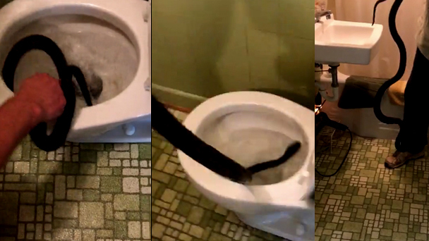Tay không bắt rắn độc gần 2m trong bồn cầu