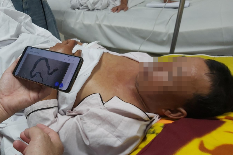 Nghe tiếng con khóc thét, gia đình đánh chết con rắn, vứt ra vườn. Sau một đêm đắp thảo dược, chân trẻ tím đen, sốt cao, co giật, phải đi viện gấp, tiên lượng rất nặng.