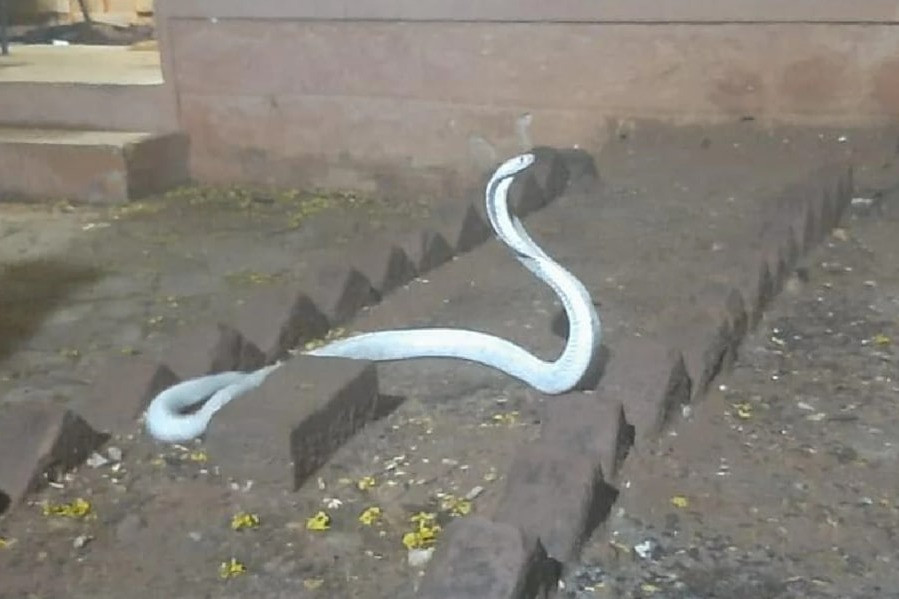 ẤN ĐỘ - Con rắn hổ mang toàn thân trắng xoá xuất hiện gần nhà dân ở thành phố Coimbatore.