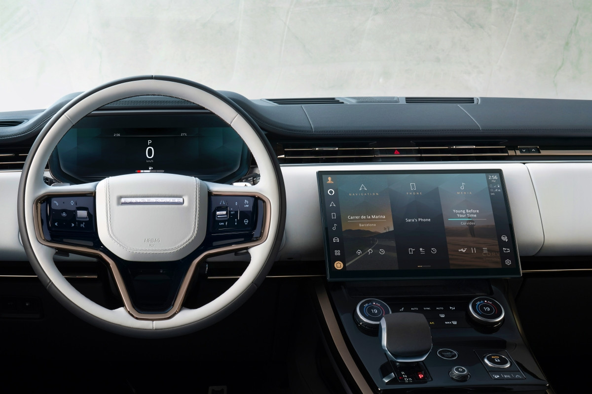 Được phát triển dựa trên nền tảng MLA-Flex mới của Land Rover, Range Rover Sport cũng mang thiết kế nội thất tương tự, hướng đến sự tối giản nhưng không kém phần hiện đại nhờ màn hình cảm ứng cong ở trung tâm kích thước 13,1 inch.