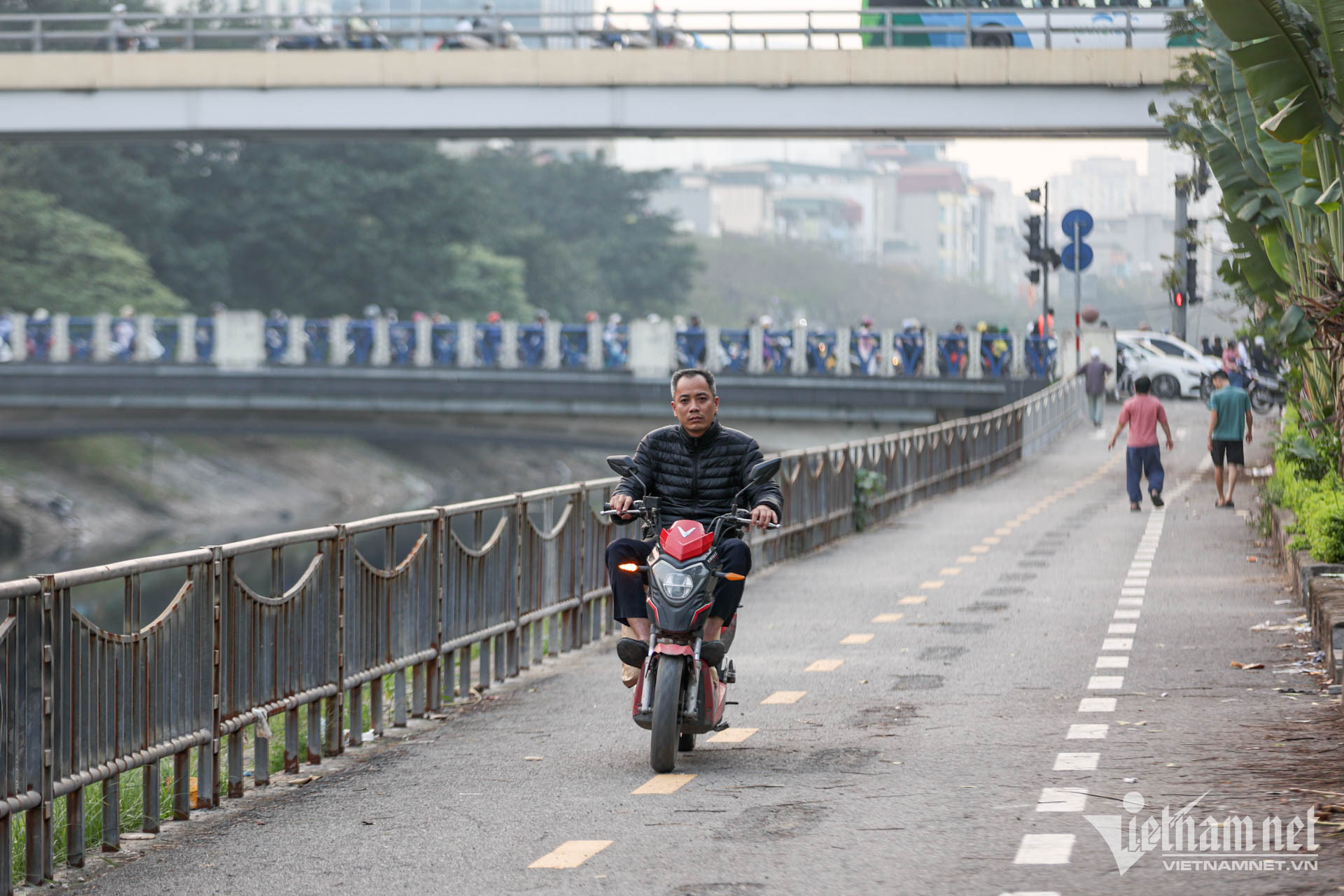 Vào giờ cao điểm chiều 29/3, sau khi rào chắn bị tháo, nhiều chủ phương tiện điều khiển xe máy, xe máy điện rẽ hướng vào tuyến đường cho xe đạp và đi bộ khiến nhiều người cảm thấy không an toàn.