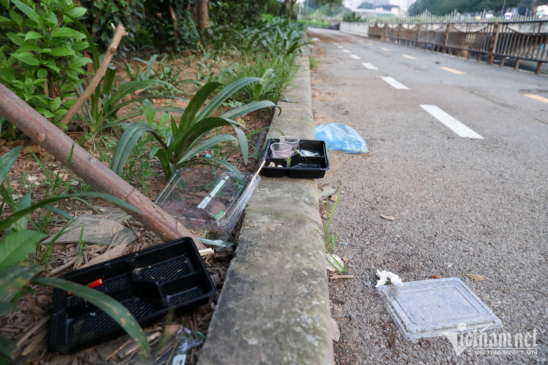 Theo ông Thành (lái xe ôm), các thanh rào bị tháo từ ngày 28/3 nhưng các hố cọc vẫn chưa được lấp hay lắp thay thế.