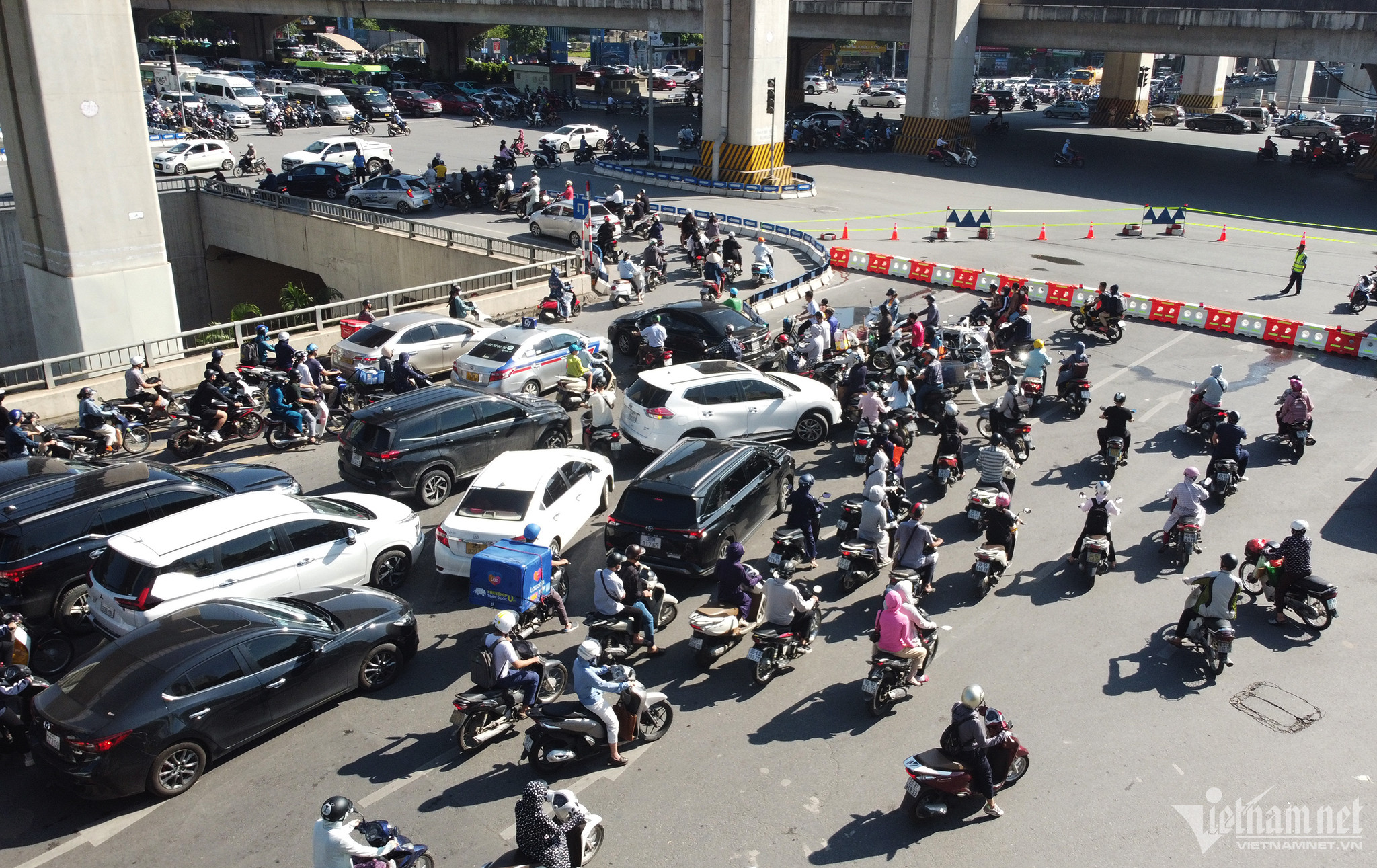 "Bình thường tôi đi từ Hà Đông đến Xã Đàn mất khoảng 45 phút nhưng hôm nay riêng vượt được qua khu vực rào chắn thi công đã mất đến nửa giờ", chị Bích Hạnh (Quang Trung, Hà Đông) chia sẻ.