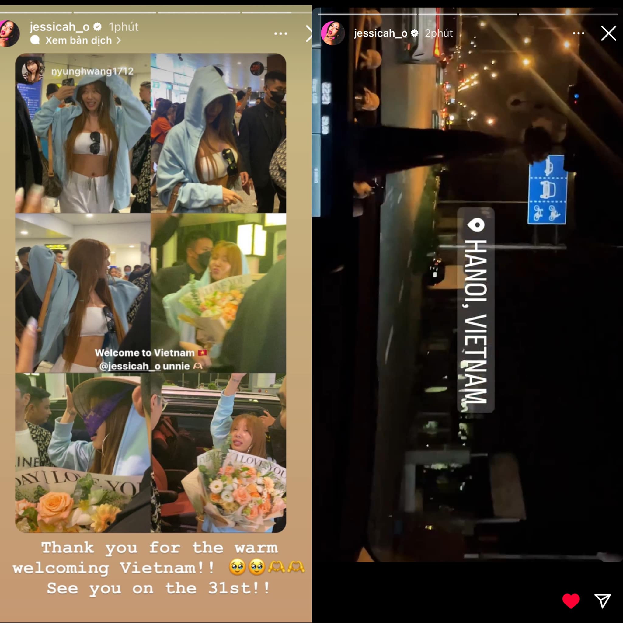 Ngày 29/8, nữ rapper đình đám người Hàn Quốc Jessi đã tới Hà Nội để chuẩn bị cho một buổi biểu diễn âm nhạc sắp diễn ra. Đây cũng là lần đầu tiên mà Jessi đến với Việt Nam. Cô được người hâm mộ chào đón nồng nhiệt. Nữ ca sĩ lập tức đăng ảnh check-in tại Hà Nội trên trang cá nhân có 13,6 triệu người theo dõi và gửi lời cảm ơn: "Thank you for the warm welcoming Vietnam! See you on the 31st" (Cảm ơn sự chào đón ấm áp của người hâm mộ Việt Nam. Chúng mình gặp nhau vào ngày 31 này nhé).