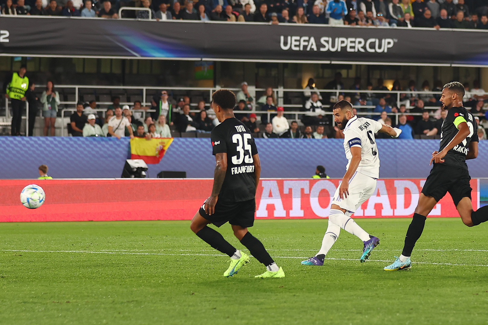 Trong trận đầu tiên thi đấu với cương vị đội trưởng, sau khi Marcelo chia tay, Benzema nâng cao danh hiệu Siêu Cúp châu Âu thứ 5 trong lịch sử Real Madrid, cân bằng kỷ lục của Barcelona và Milan.