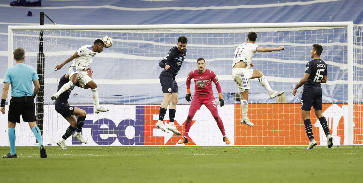 Chưa đầy 90 giây sao, trong phút bù giờ đầu tiên của trận đấu, mành lưới thủ môn Ederson một lần nữa rung lên. Vẫn là Rodrygo với cú đánh đầu tuyệt đẹp, sau pha căng ngang của Dani Carvajal và bóng khẽ chạm đầu Marco Asensio.
