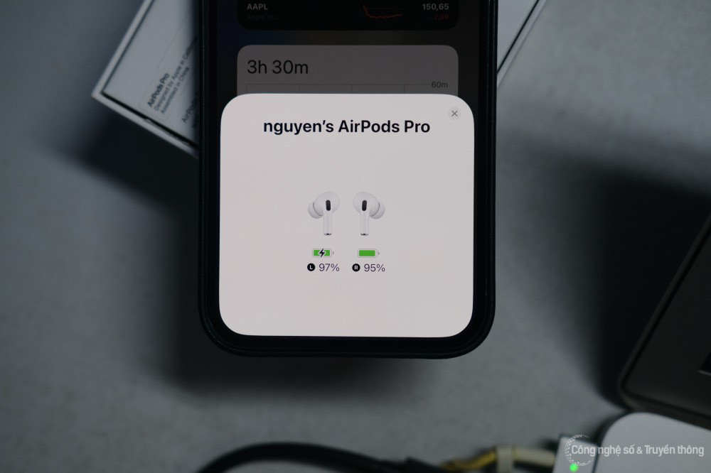 Theo Apple, tai nghe có thể sử dụng liên tục 6 giờ đồng hồ khi bật chống ồn, 30 giờ khi dùng với hộp sạc. Thực tế trải nghiệm nhanh cho thấy, tai nghe từ khi đầy pin, dùng liên tục 5 tiếng đồng hồ kết hợp giữa các chế độ, thì sau 5 giờ đồng hồ sẽ báo pin yếu (dưới 10%).