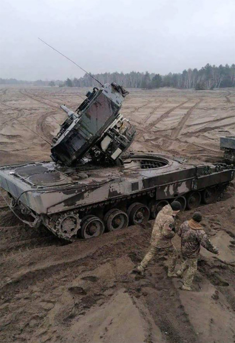 South Front cho hay, kíp lái xe tăng của Ukraine đã gặp trục trặc trong việc điều khiển chiếc Leopard 2A4, khiến nó bị trượt từ trên đồi xuống và bị hư hỏng nặng. Sự cố dường như ám chỉ quá trình huấn luyện ngắn ngủi ở nước ngoài để vận hành khí tài do phương Tây viện trợ là chưa đủ với binh sĩ Ukraine.