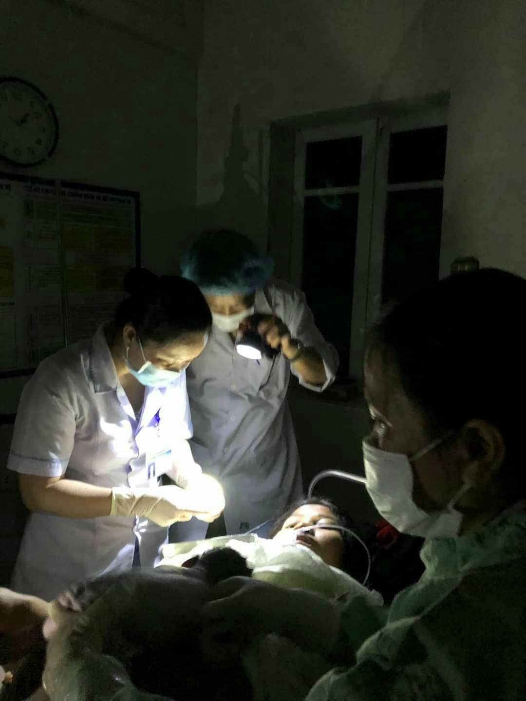 “Vì mất điện nên 4 người trong ê kíp mỗi người mỗi việc, người dọi đèn, người động viên sản phụ, người đỡ đẻ. Khoảng 30 phút sau, sản phụ sinh đứa đầu tiên, ê kíp kiểm tra và cho sản phụ sinh tiếp. 15 phút sau, sản phụ sinh đứa thứ 2, lúc ê kip lấy nhau thì phát hiện thêm một bọc ối nữa nên tiếp tục động viên sản phụ. 15 phút sau đứa thứ 3 ra đời.
