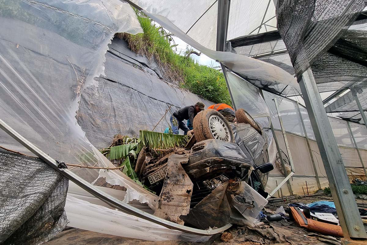 Ngày 17/4, cơ quan chức năng khám nghiệm hiện trường, làm việc với người liên quan để điều tra nguyên nhân xe 4 chỗ lao xuống vực sâu, trúng nhà kính trồng hoa của người dân tại phường 5 (TP Đà Lạt, Lâm Đồng).