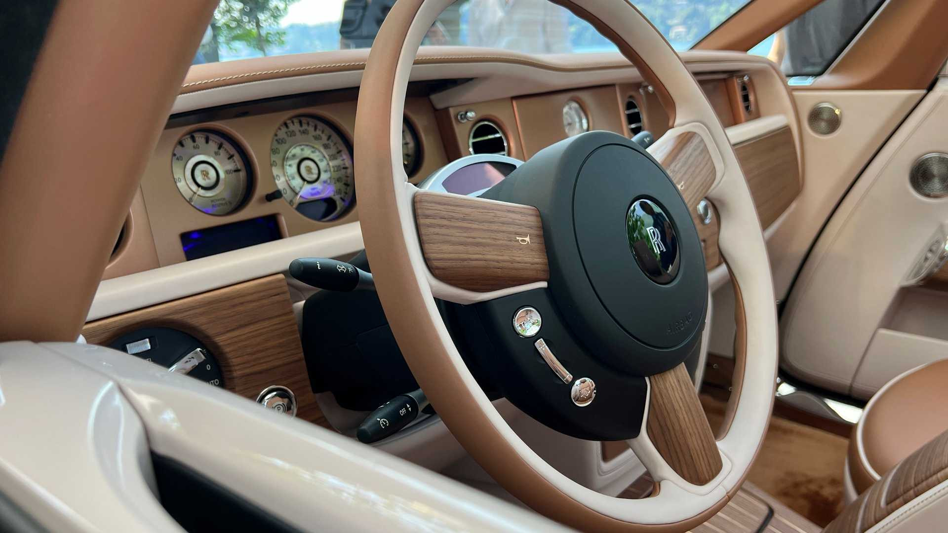 Bên trong nội thất, màu cognac tiếp tục là chủ đạo, kết hợp với vật liệu da cao cấp. Nhiều điểm nhấn trong cabin làm bằng gỗ Royal Walnut và các chi tiết màu vàng hồng. Chất liệu xà cừ cũng được áp dụng trên thiết bị chuyển mạch, trong cụm đồng hồ lái và đồng hồ trung tâm.
