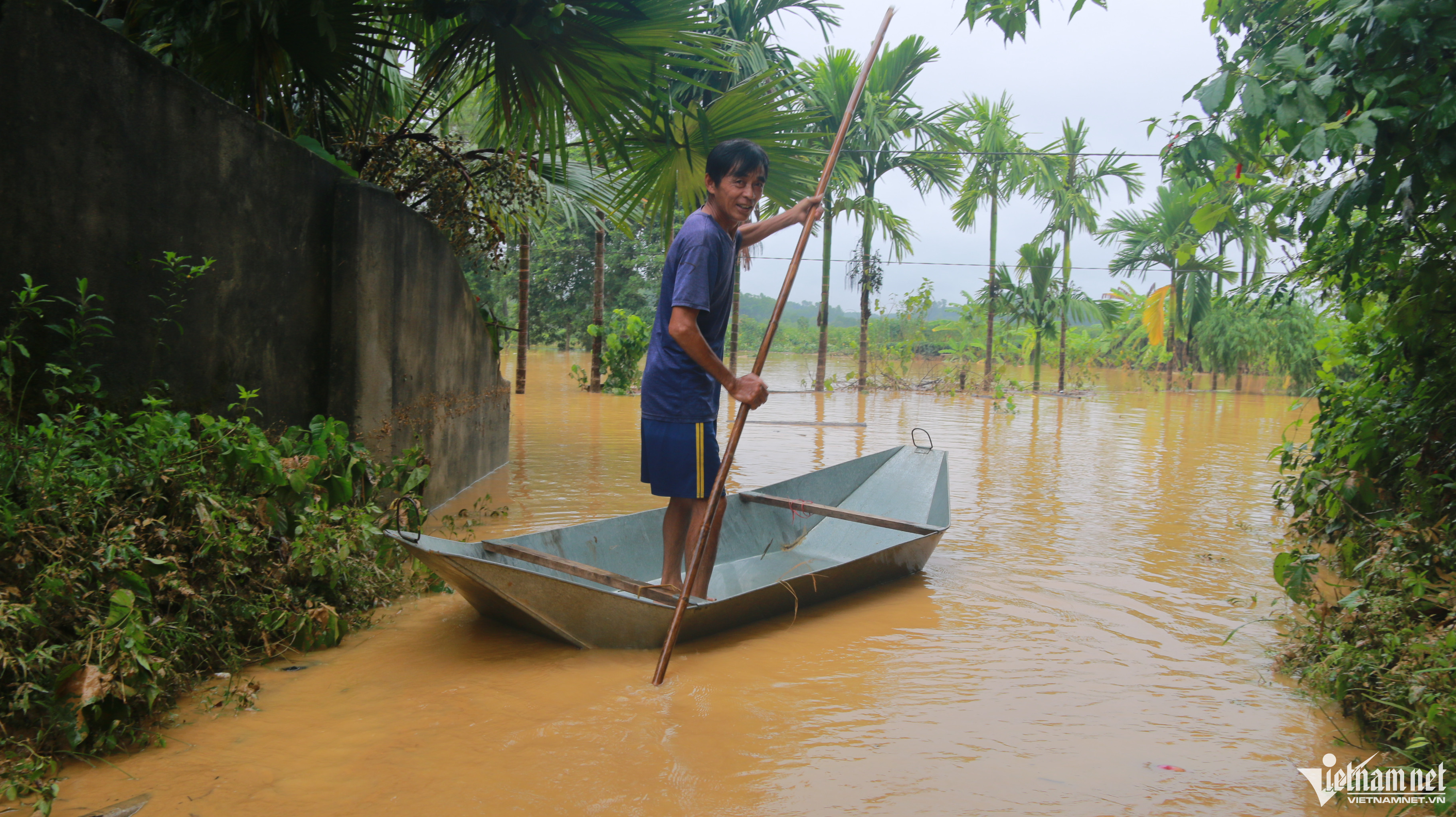 Nhìn căn nhà ngập sâu trong nước, anh Thái Doãn Liễu (SN 1979, trú xóm 7, xã Hạnh Lâm) chia sẻ: "Hôm qua nước lũ dâng lên rất nhanh, gia đình tôi chỉ kịp sơ tán một số đồ đạc đến nơi an toàn, còn hơn 3 tạ lúa vừa thu hoạch đã bị chìm trong nước".